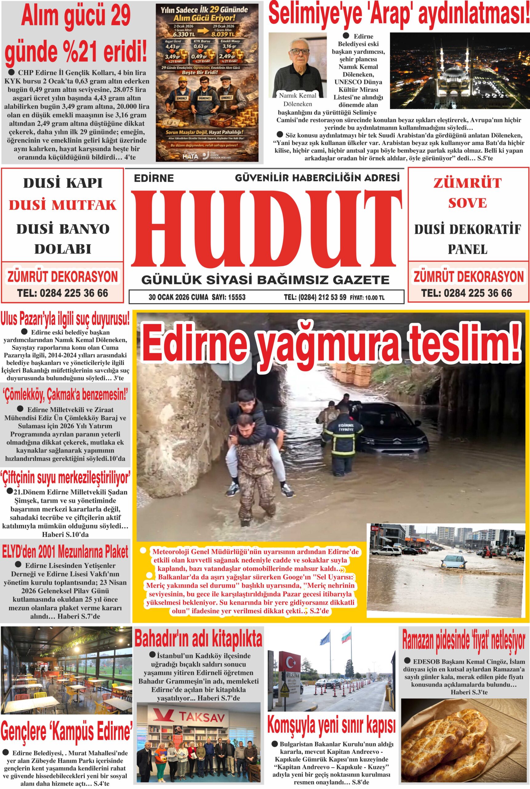 9 Kasım 2024 Cumartesi Hudut Gazetesi