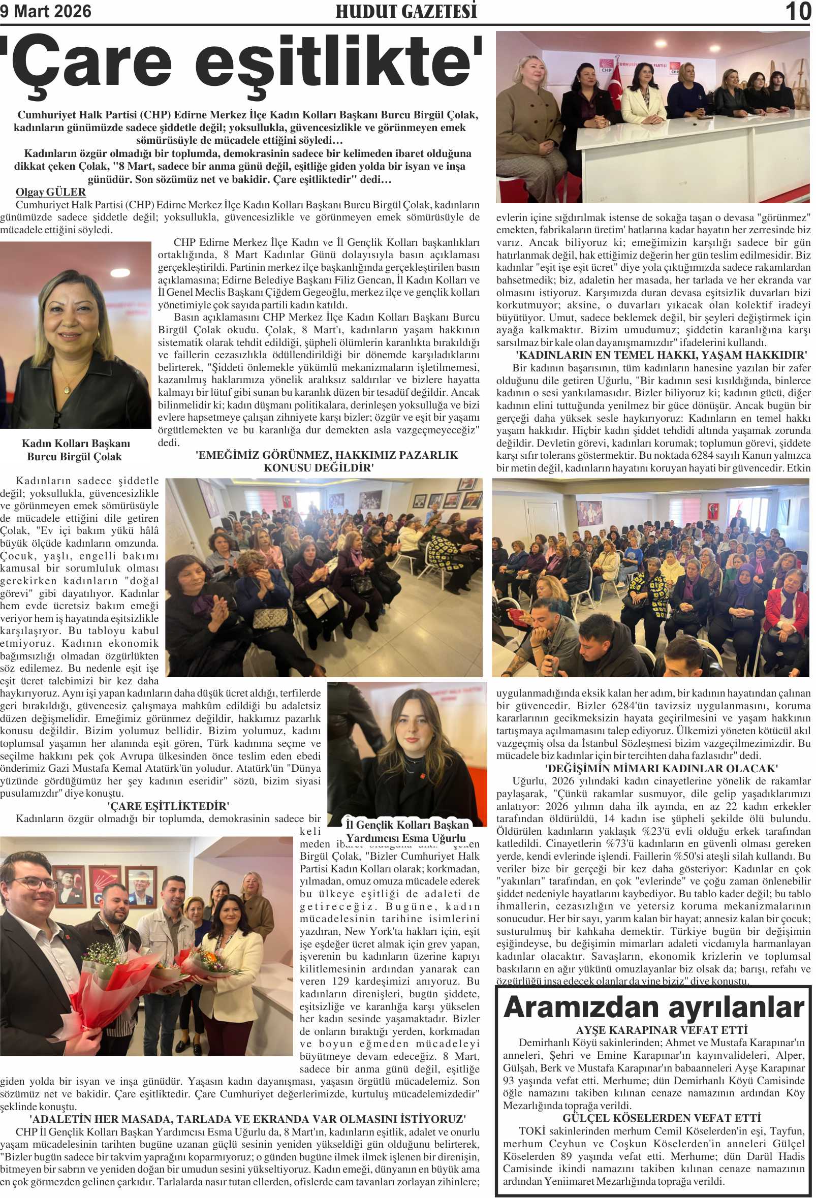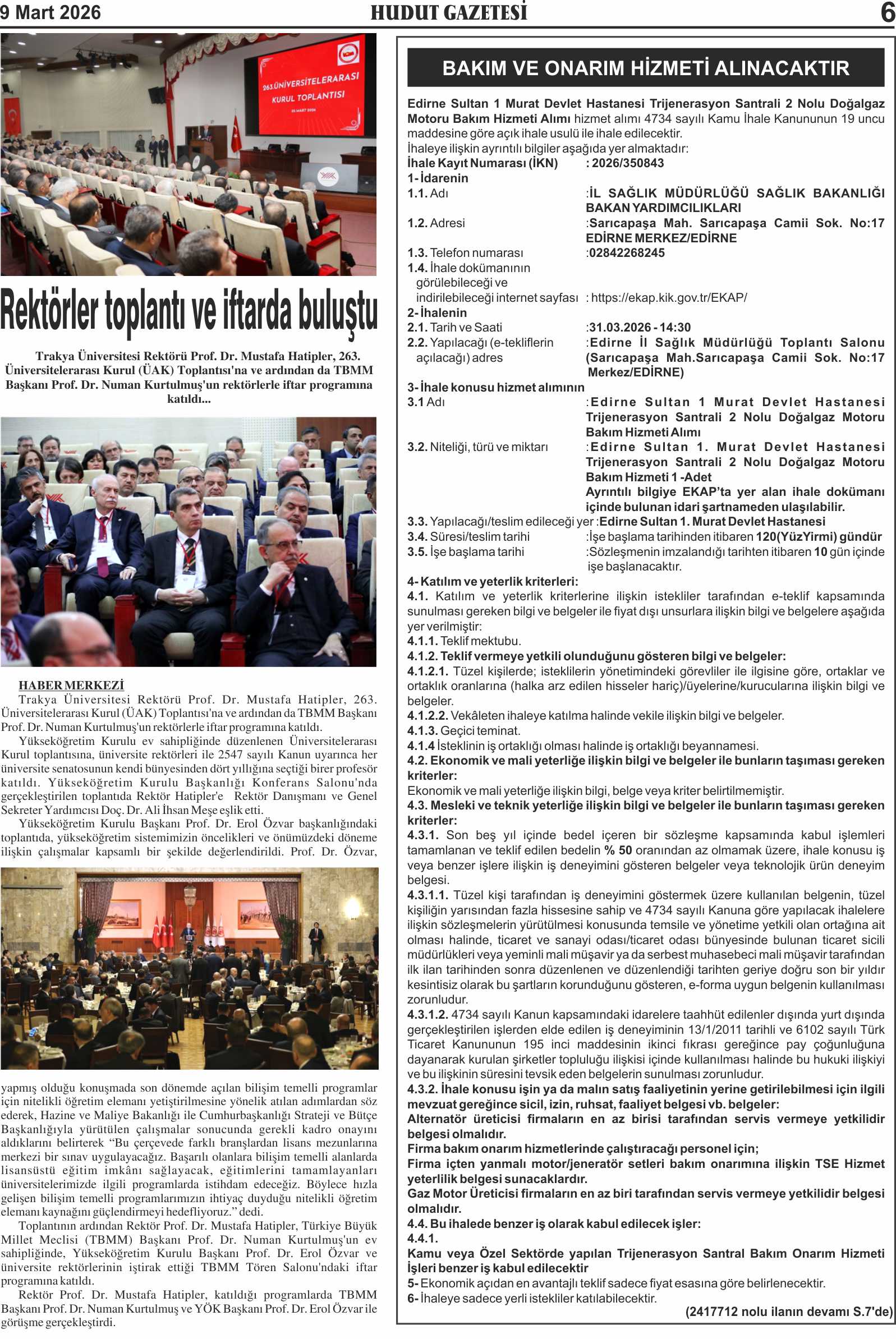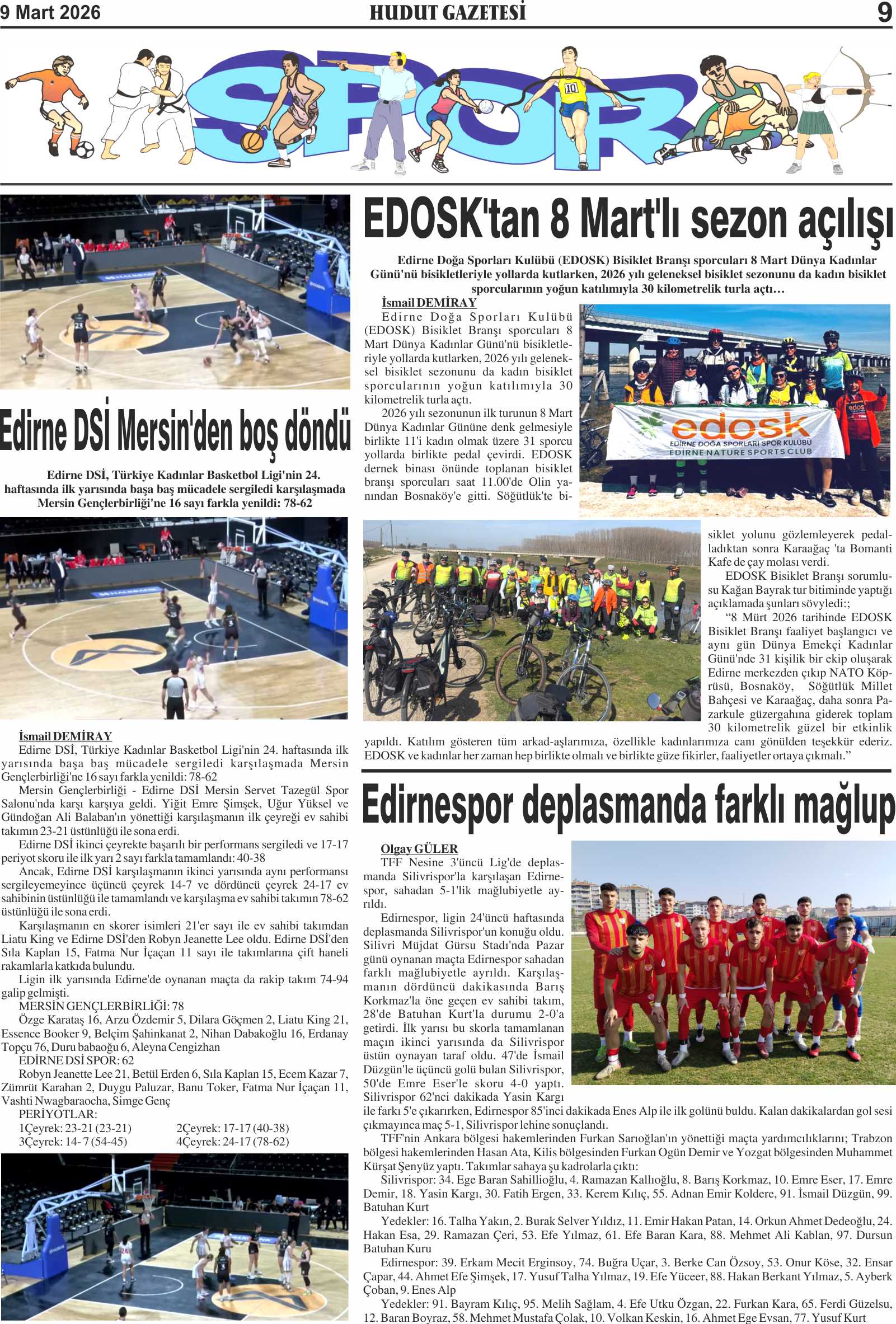 9 Mart 2026 Pazartesi Hudut Gazetesi