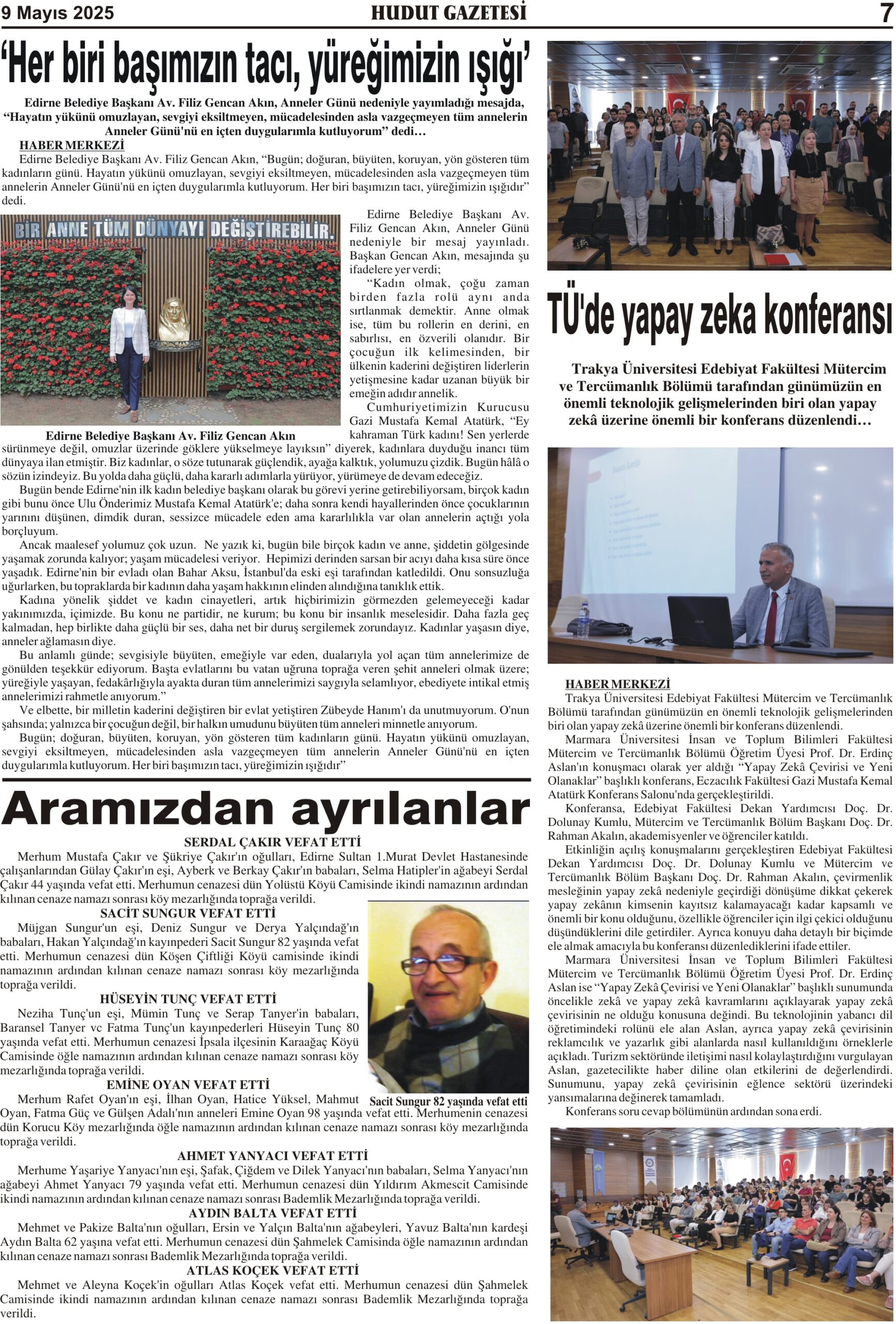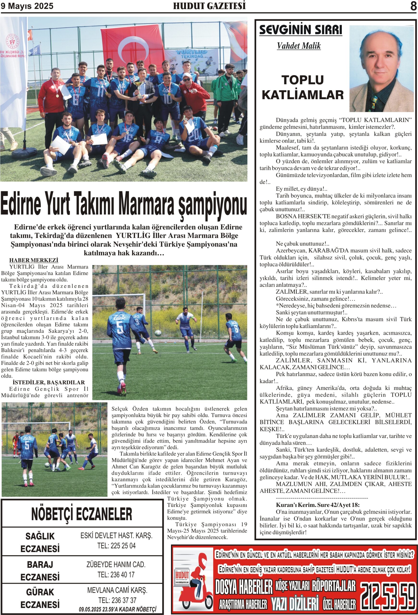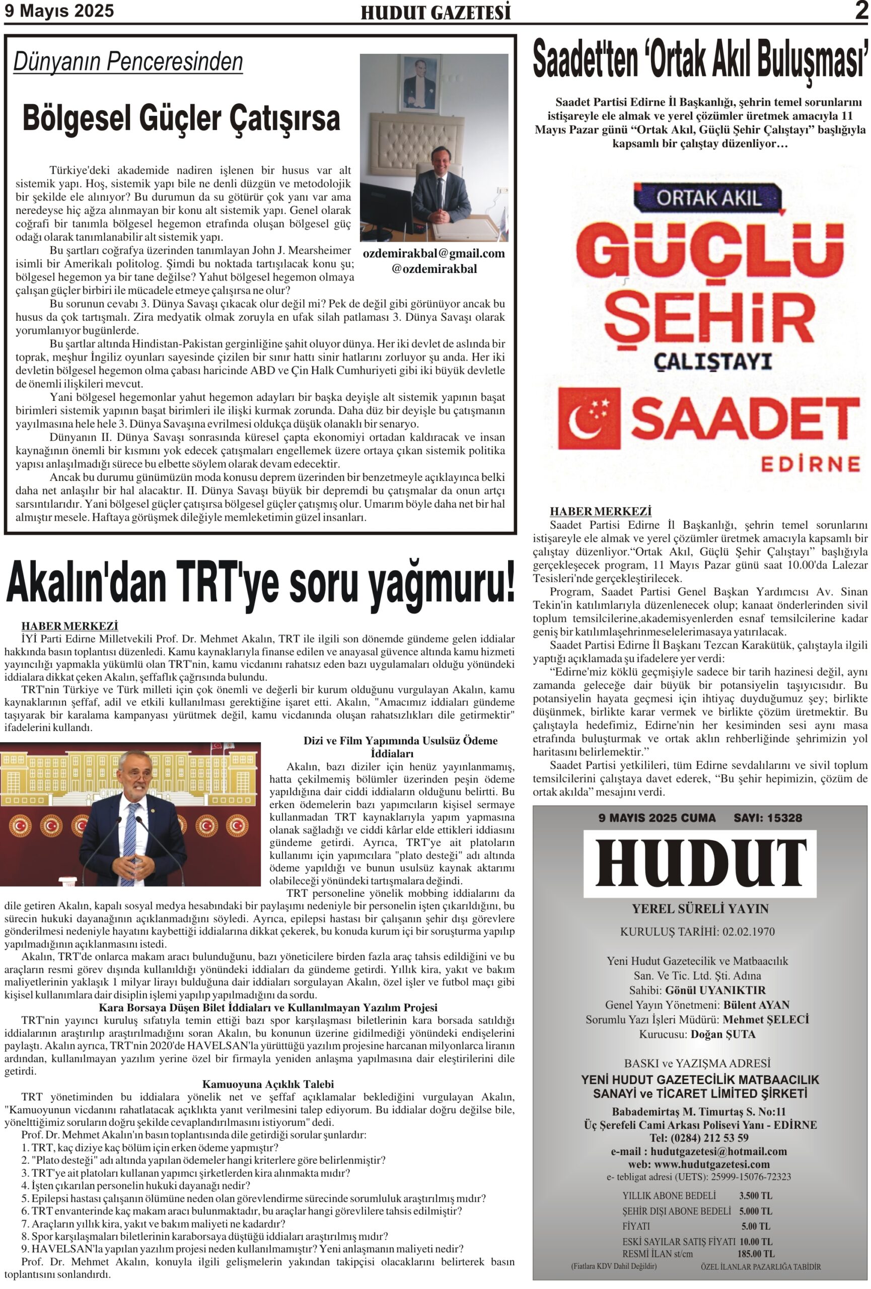 9 Mayıs 2025 Cuma Hudut Gazetesi