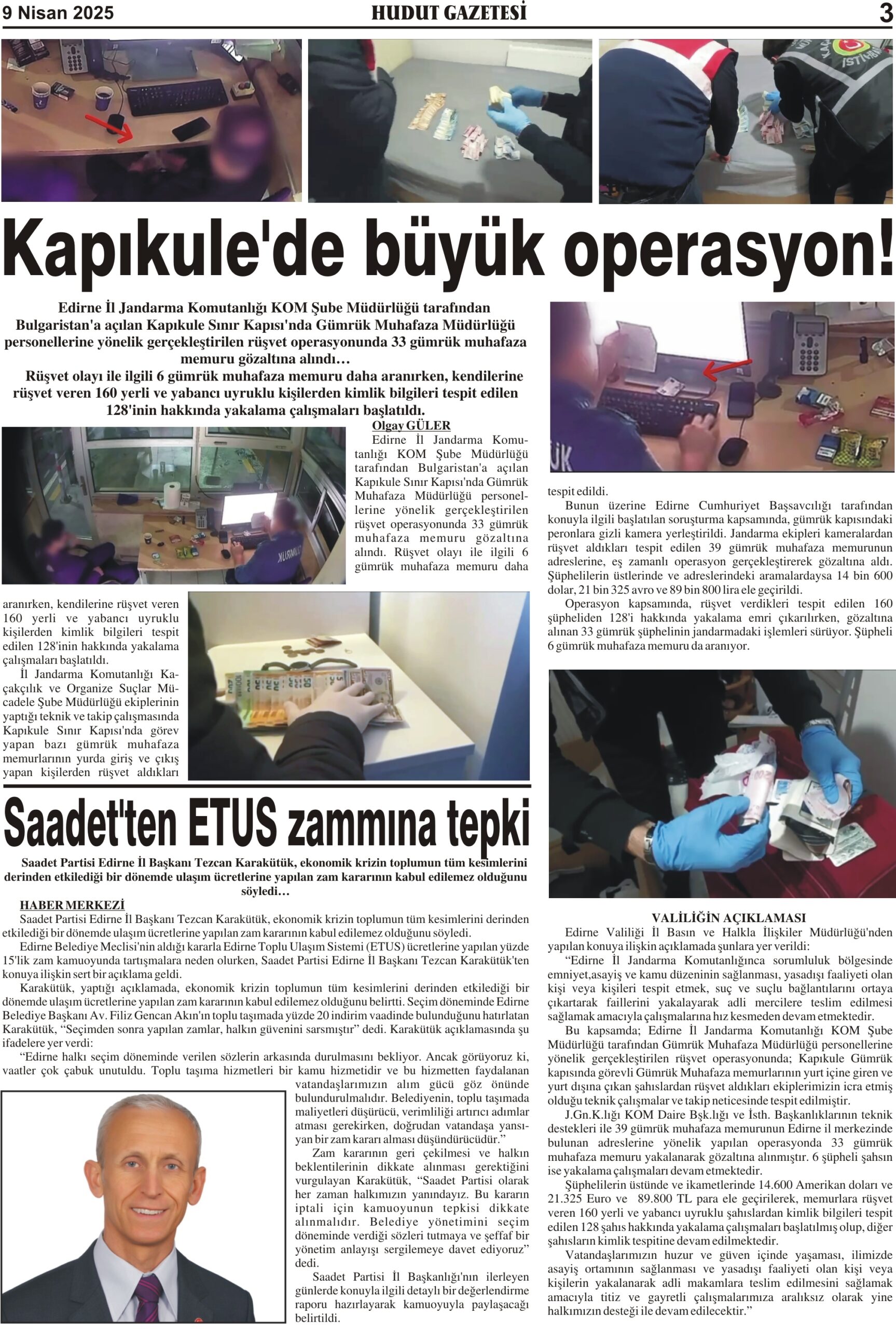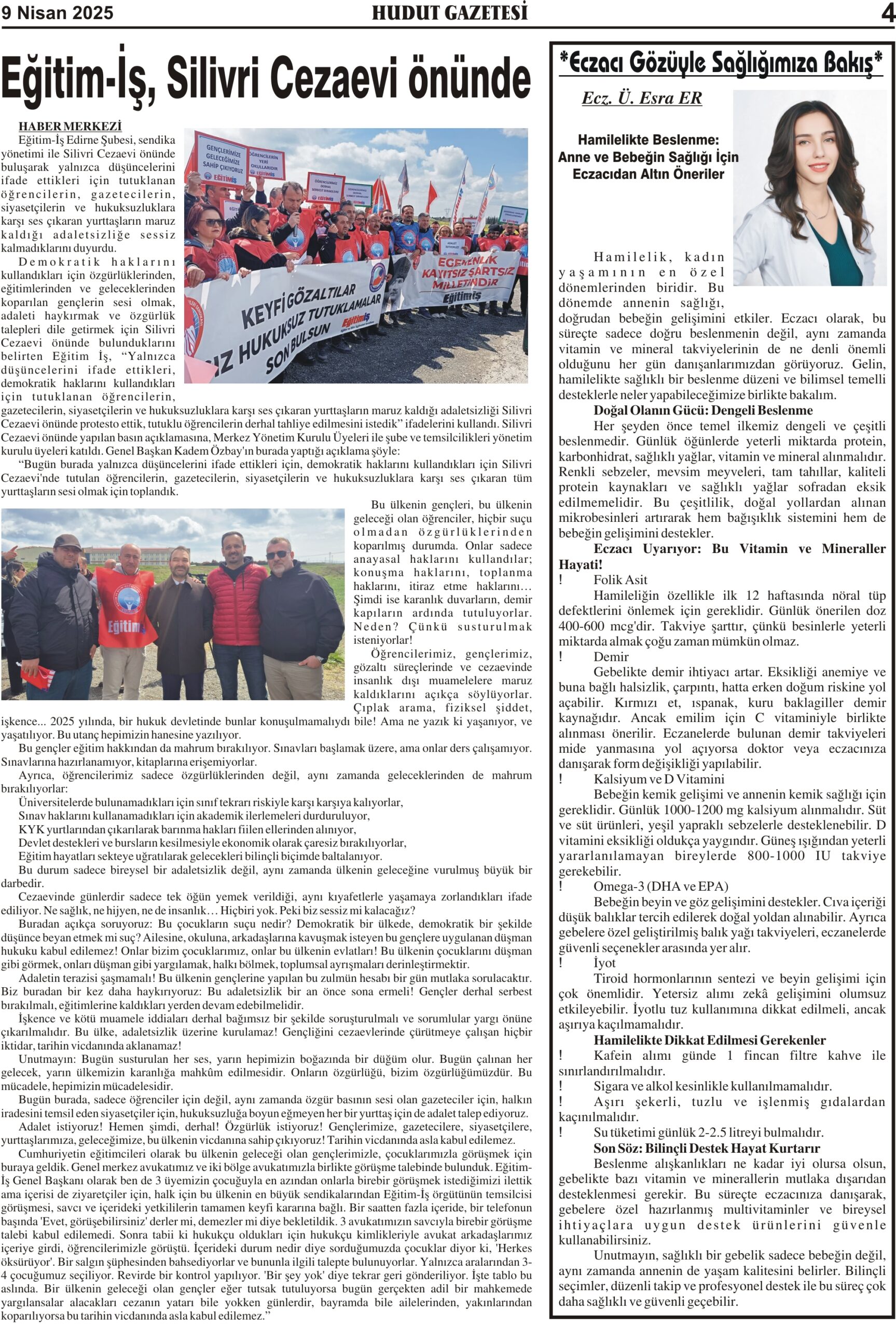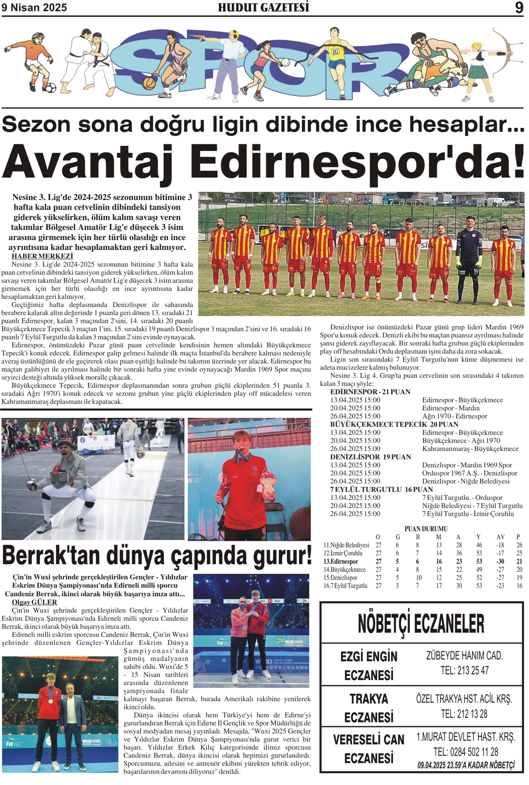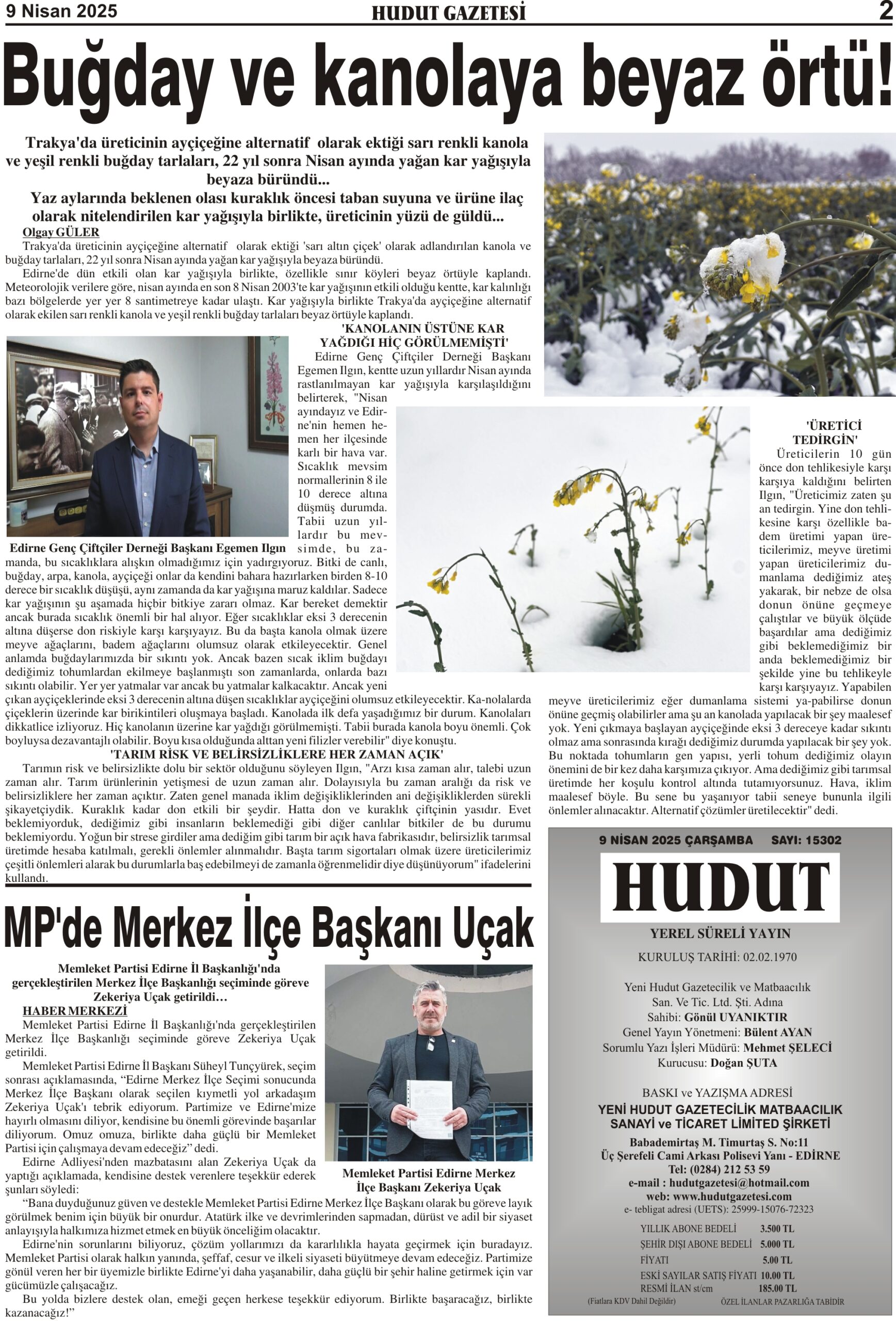 9 Nisan 2025 Çarşamba Hudut Gazetesi