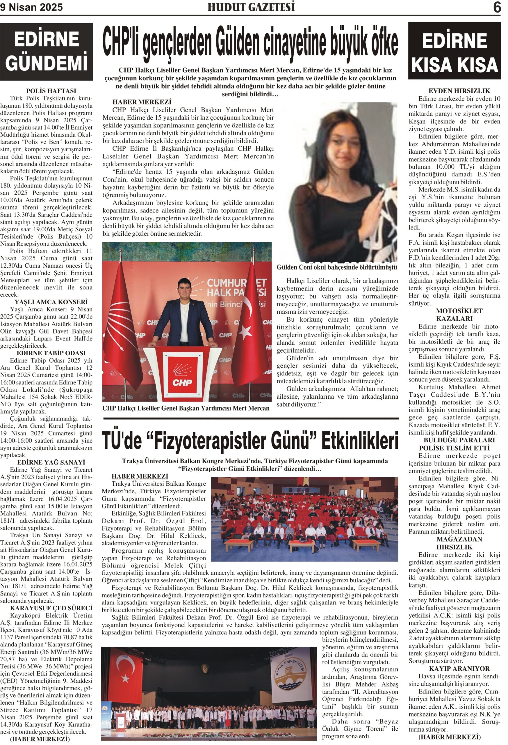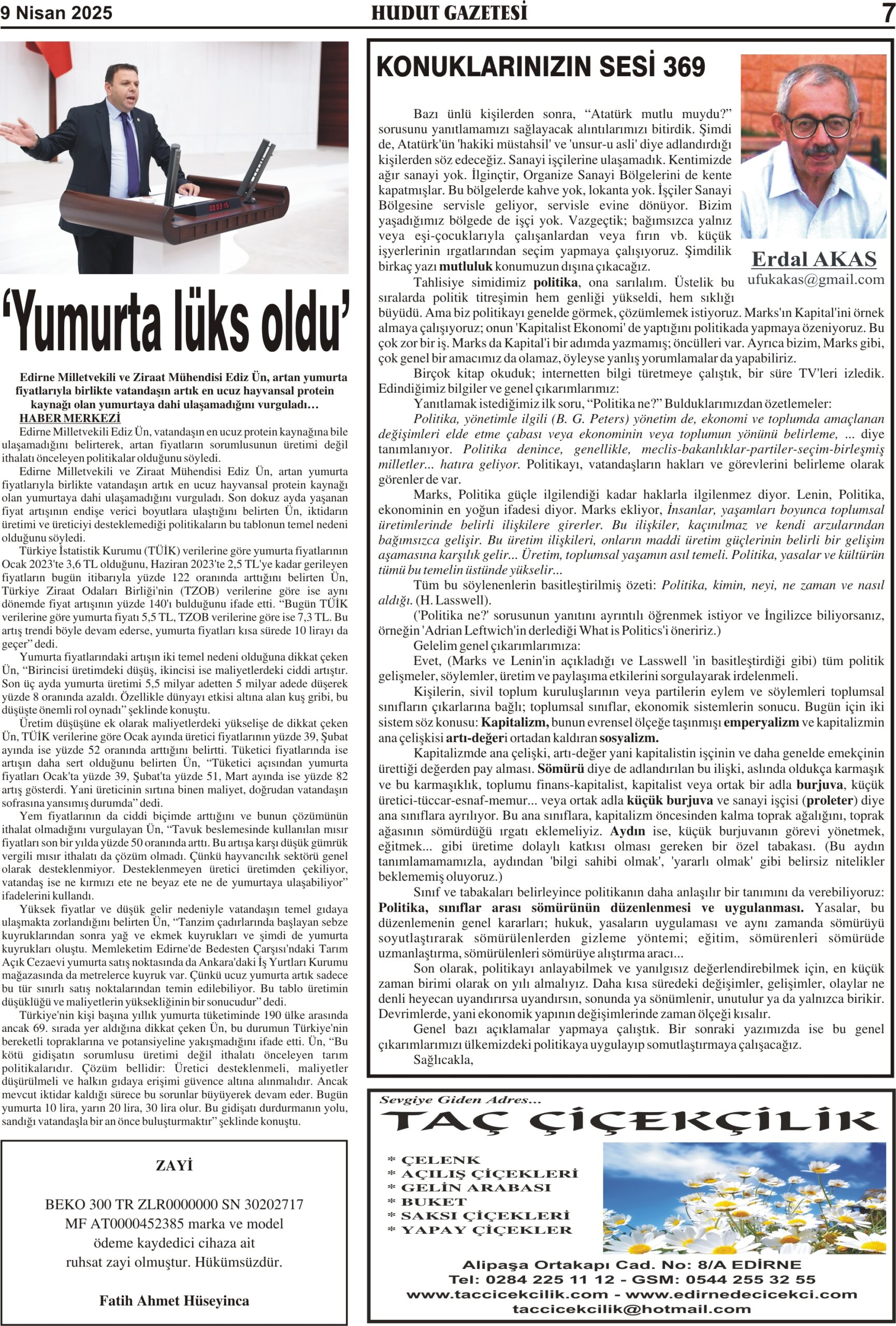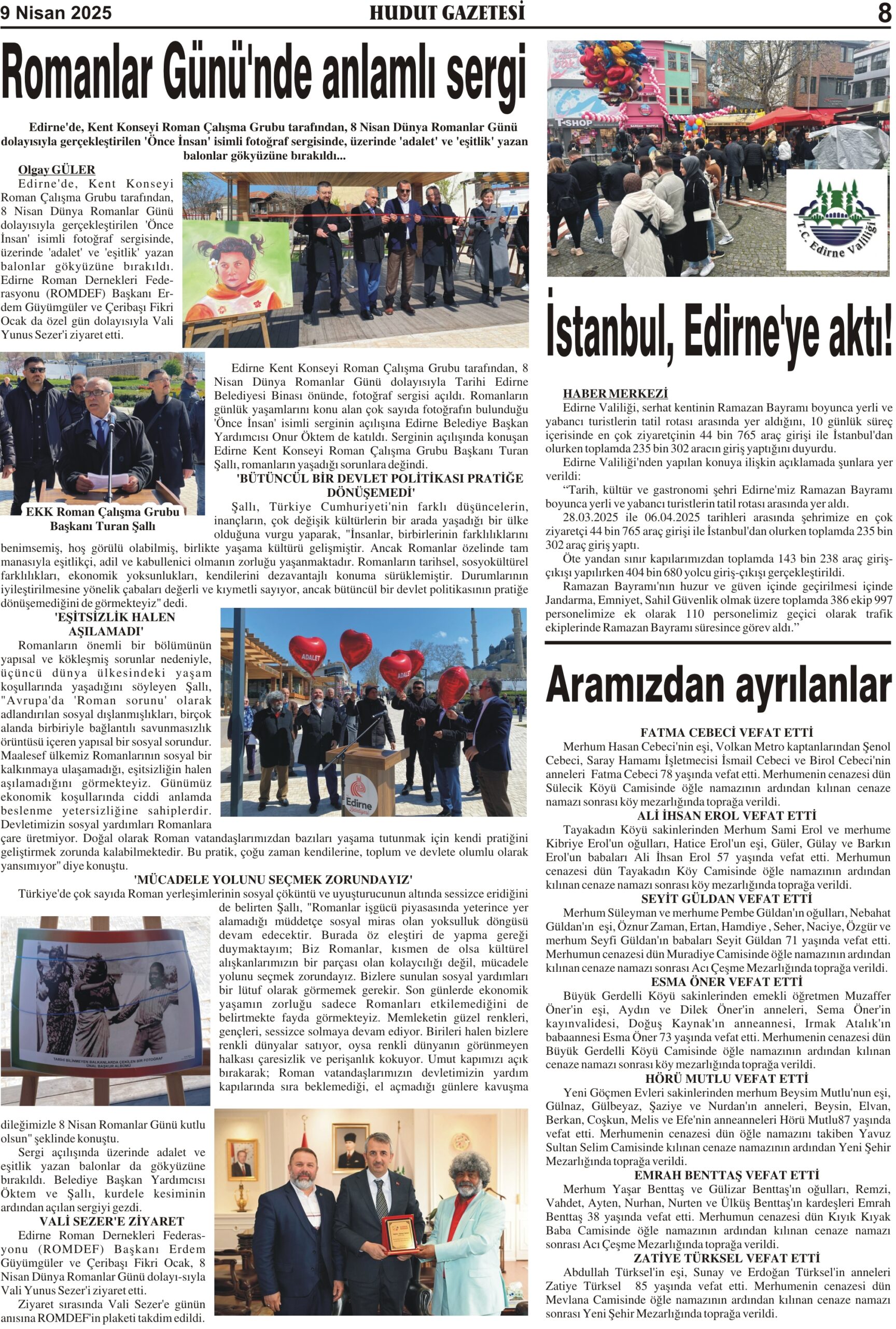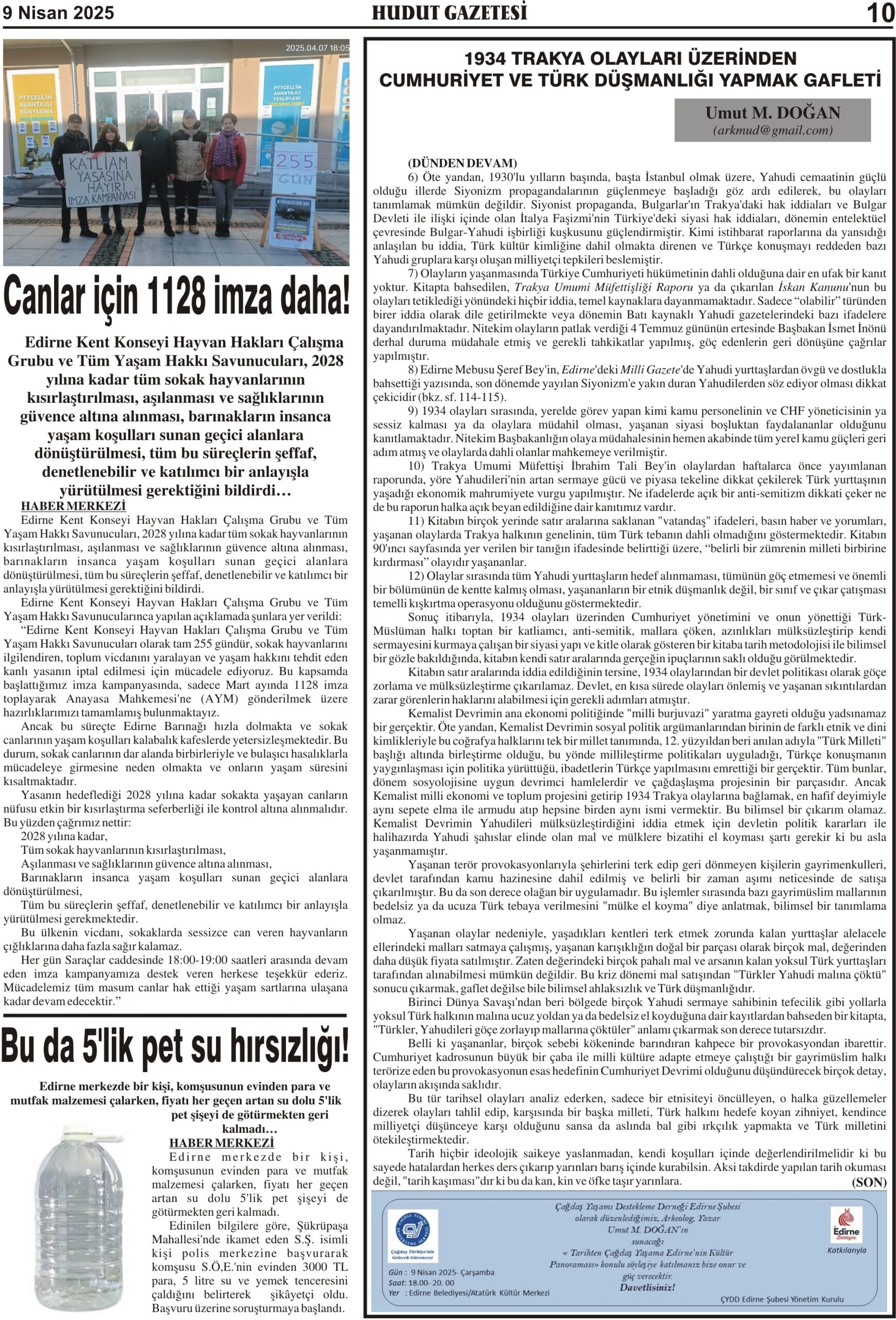 9 Nisan 2025 Çarşamba Hudut Gazetesi