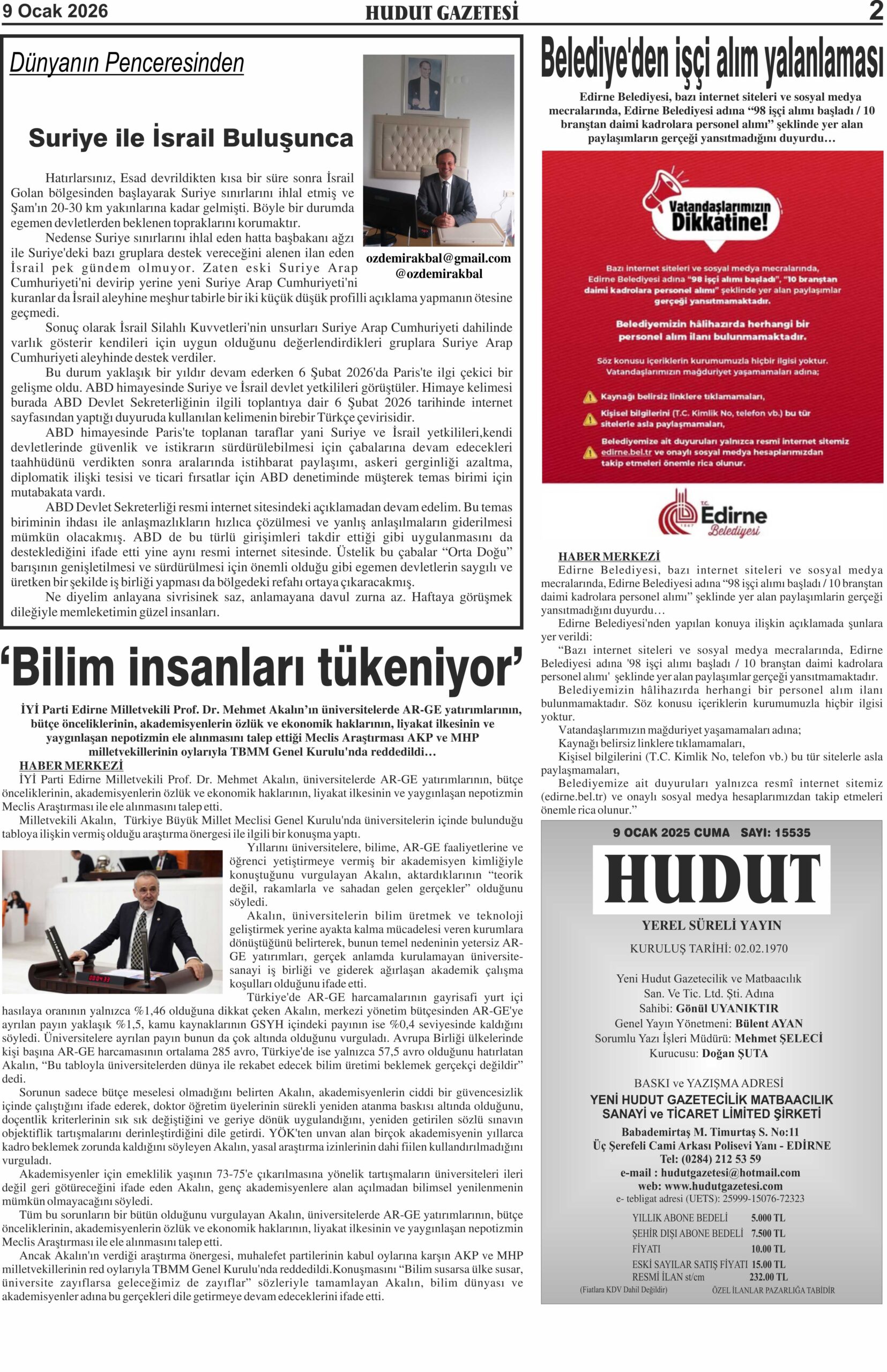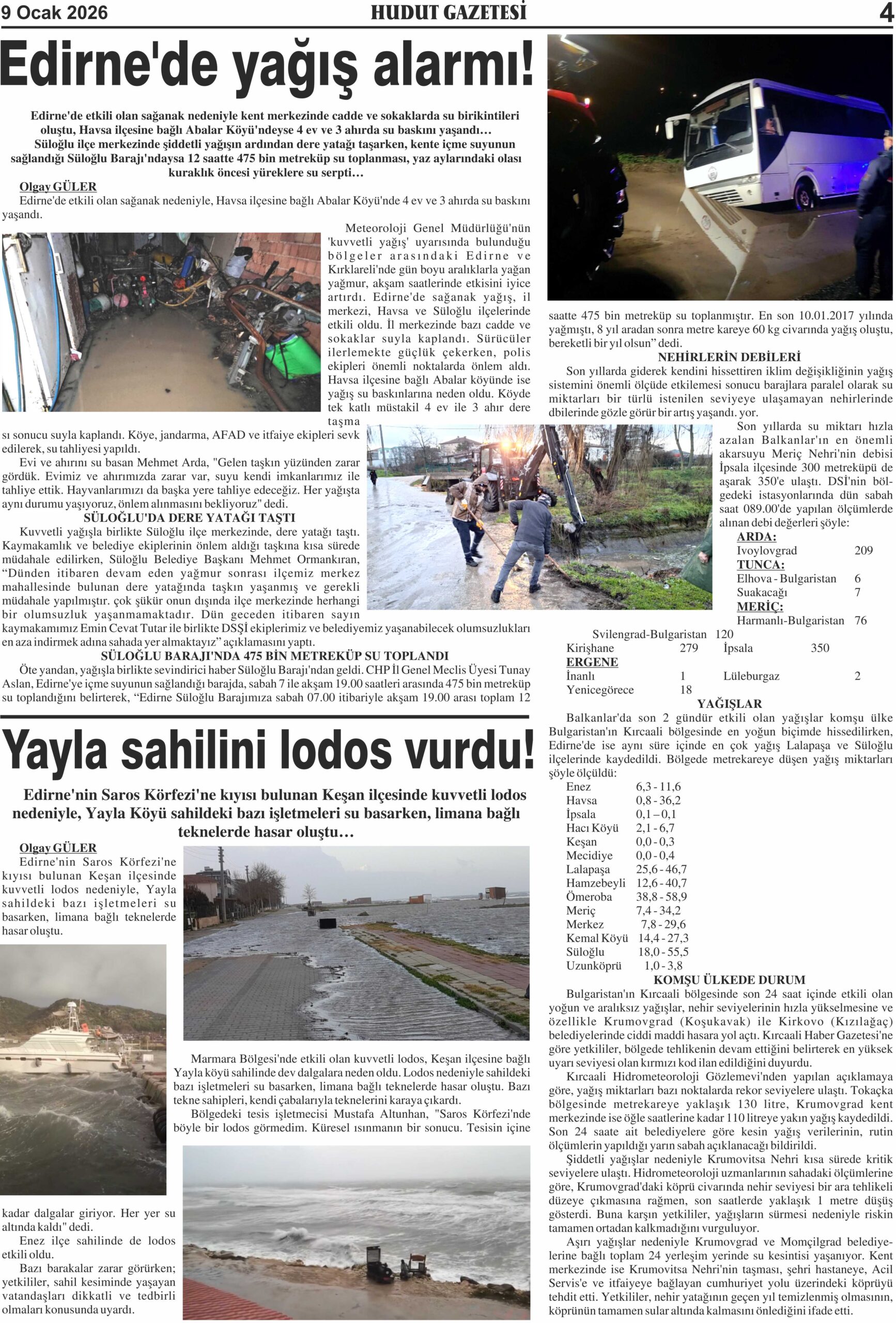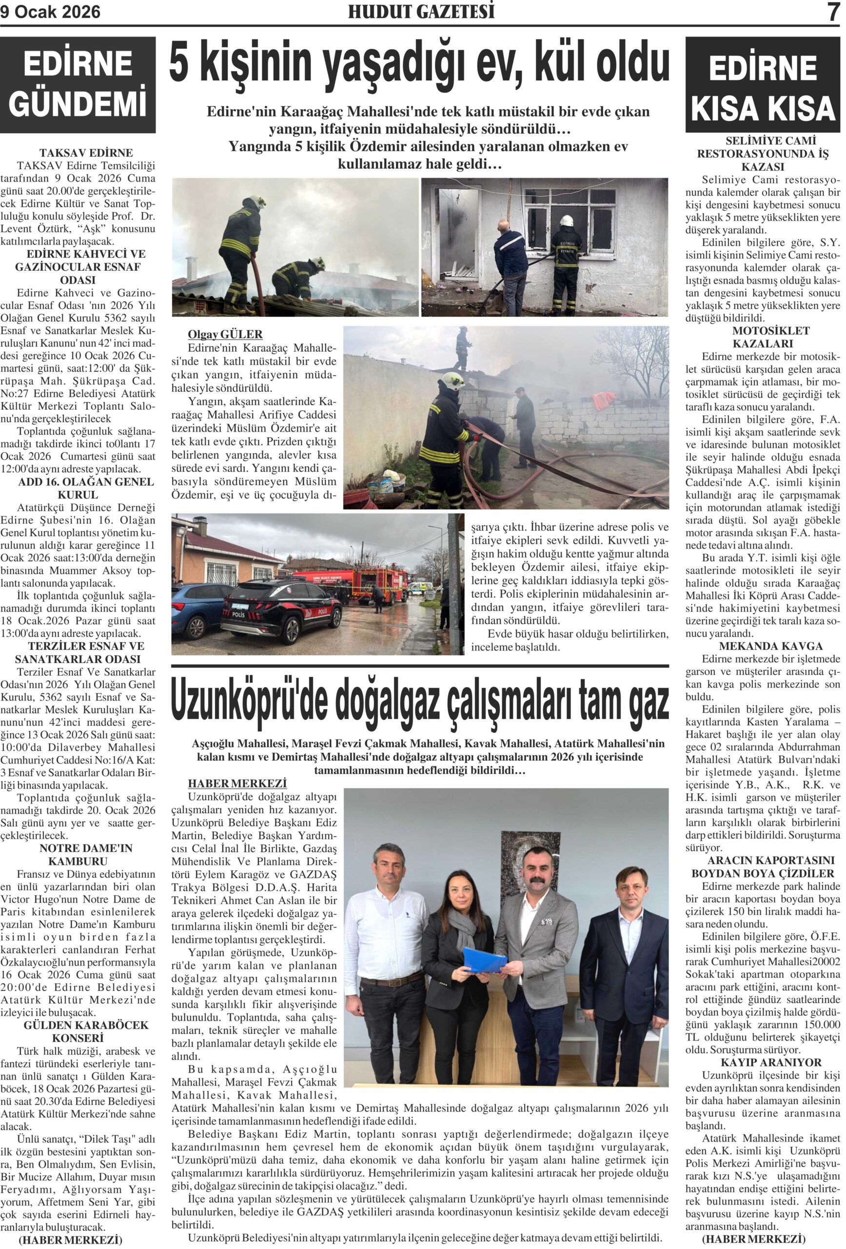 9 Ocak 2026 Cuma Hudut Gazetesi