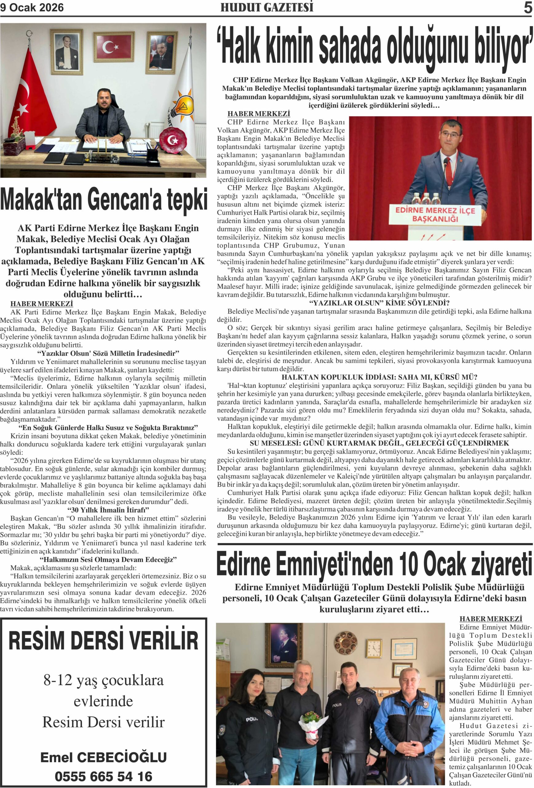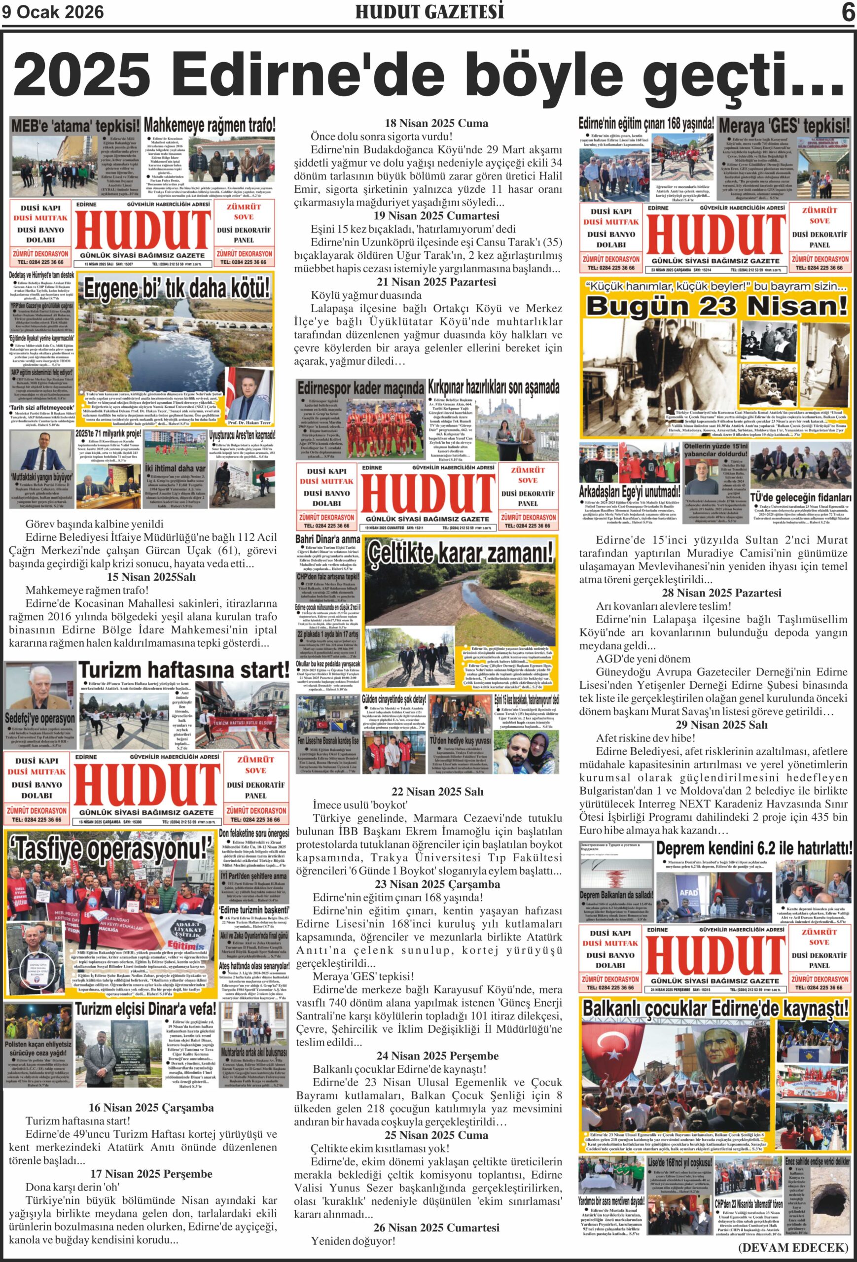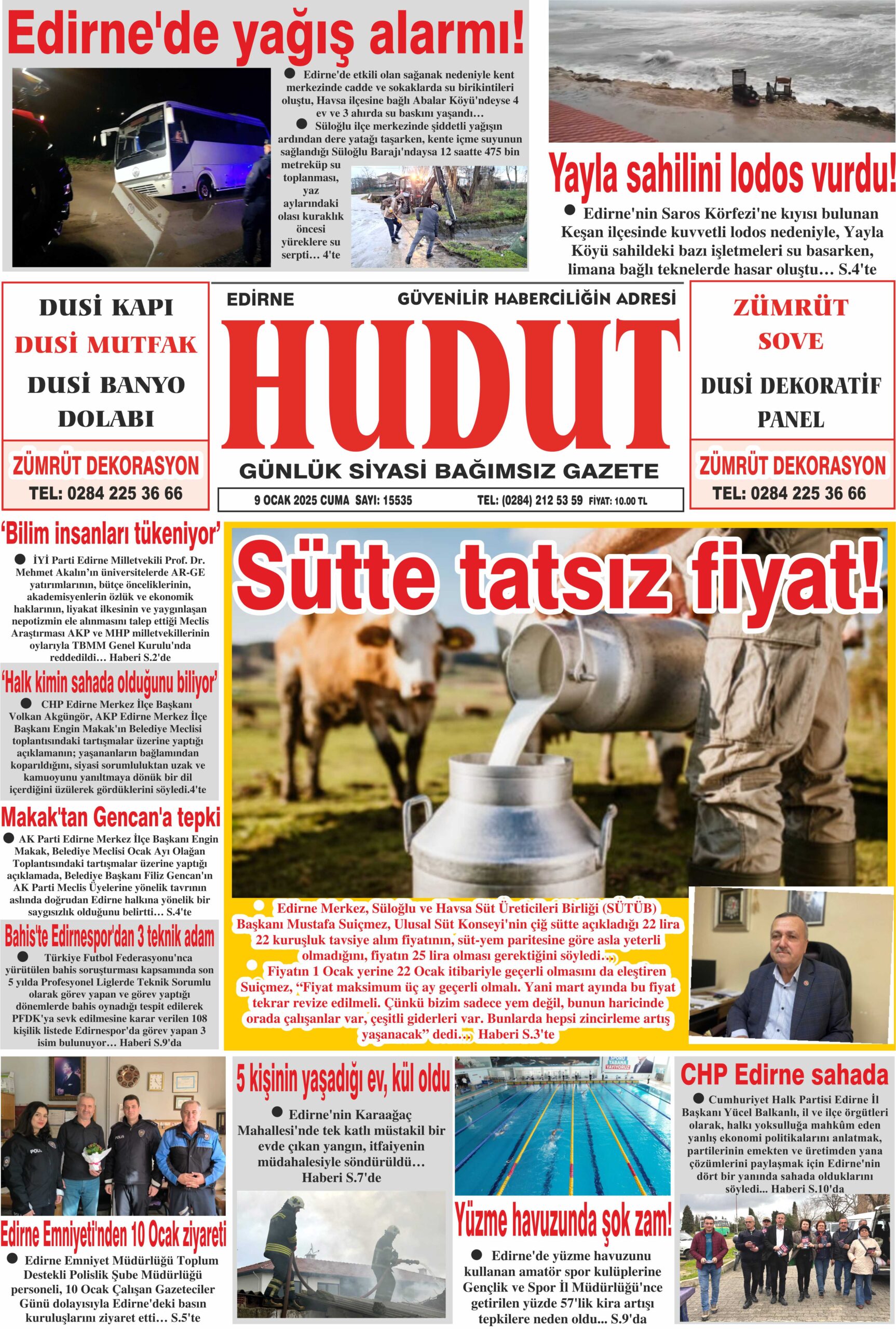 9 Ocak 2026 Cuma Hudut Gazetesi