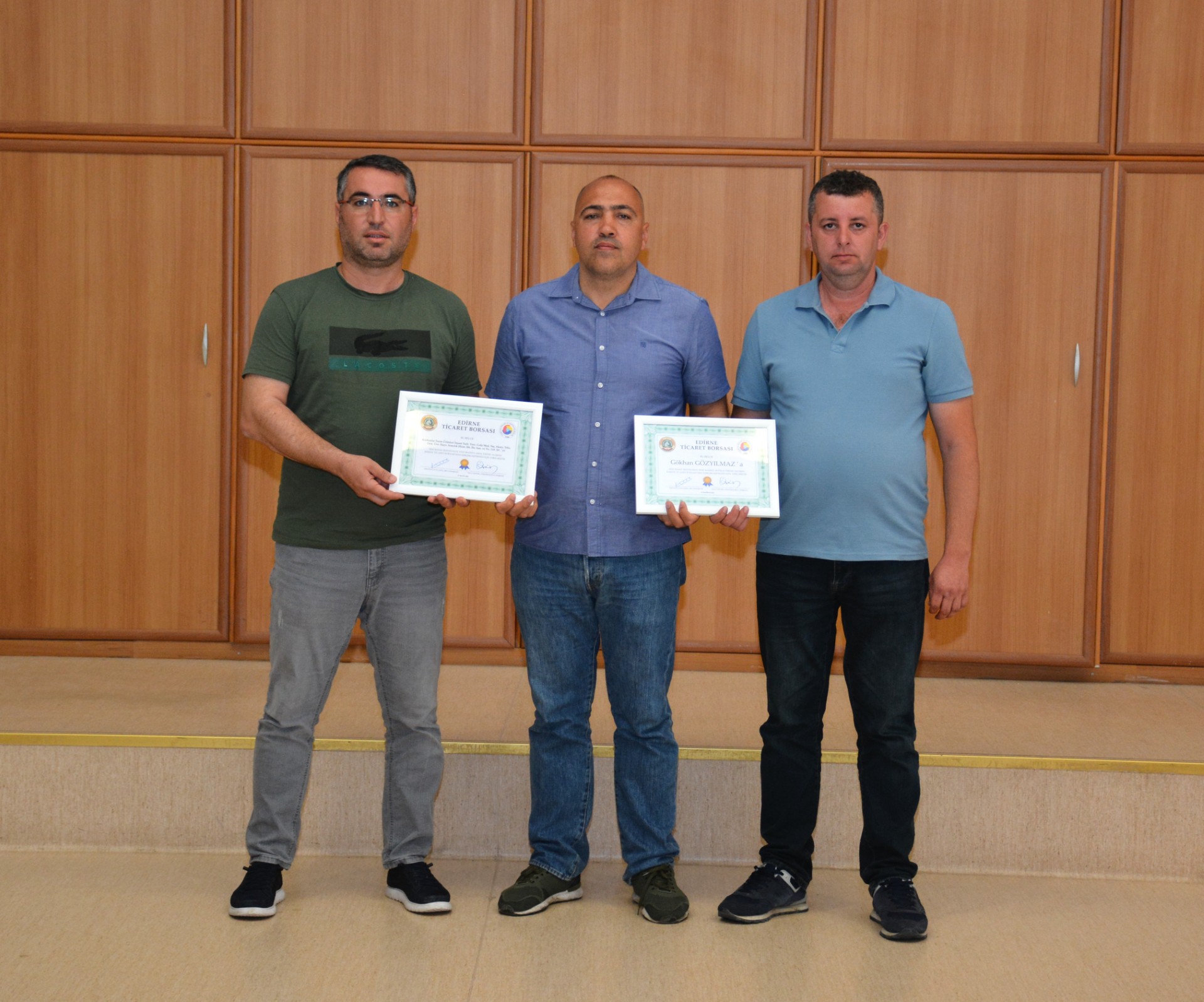 ETB Yönetim Kurulu Üyesi Oğuz Kurban, üretici Gökhan Göz Yılmaz’ı kutlayarak günün anısına plaket ile 100 litre mazot hediye etti.