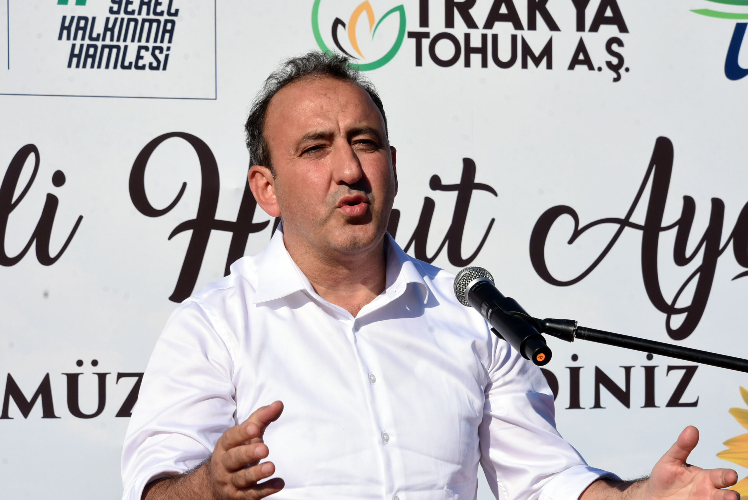 Trakya Kalkınma Ajansı Genel Sekreteri Mahmut Şahin de ayçiçeğinde yapılan Ar-Ge çalışmalarının en doğru adresinin Trakya olduğunu söyledi. Şahin, “Trakya’da bu anlamda ayçiçeğinin kültür anlamında ekilmesi, dikilmesi, biçilmesi konusunda ciddi bir altyapı var, bilgi birikimi var. Mekanizasyon noktasında, makine ekipman parkuru çok iyi. Verimli topraklarımız sulanabilir bir şekilde yapıldığında ayçiçeğinin ekilmesine çok müsait. Çiftçilerimizin de bu anlamda gayretleri var. Herkes bir araya geldi ve bu oluşum ortaya çıktı. Trakyalıların ürettiği bu yerli ve milli hibrit ayçiçeğinin ne kadar zor olduğunu ben de bu işe girince gördüm. Üç tonla başladık, bu sene yaklaşık 200 tona yakın, yaklaşık yüzde 6 ürün üretildi ve şu an Edirne, Kırklareli, Tekirdağ, Balıkesir, Çanakkale, İstanbul, Sakarya, İzmir, Kocaeli, Çorum, Tokat, Samsun gibi Türkiye’nin 22 ilinde ürünlerimiz satıldı, ekildi. Şu an hasat zamanı geldi. Mildiyö hastalığı gibi birçok hastalığa da dayanıklı bir çeşidimiz. Bu anlamda bu başarının bu başarı hikayesinin devam etmesi için üreticilerimizden rica ediyoruz, ne olur bu çeşidimizi alalım. Köyünüzde insanlara beldenizde, ilçenizde, ilinizde, etrafınızda kimler varsa söyleyin. Bu yılki yaklaşık 200 ton, Allah’ın izniyle seneye 400 tona, 400 tonlara çıksın, 1000 tonlara çıksın istiyoruz” diye konuştu.
