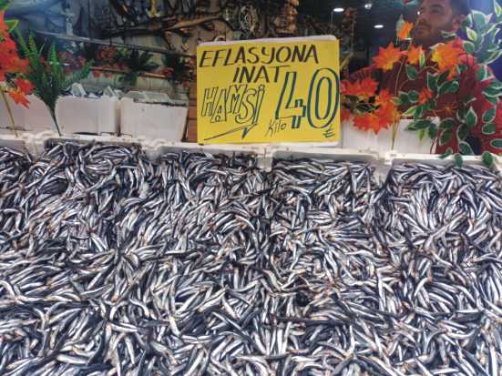 Açık denizlerde av yasağının kalkmasından bu yana fiyatı 100 liranın altına inmeyen Hamsi, ilk karın düşmesiyle birlikte bollaştı. Balıkçılar, teknelerinde tonlarca hamsiyle karaya dönünce, fiyat da düşmeye başladı. Geçtiğimiz günlerde kilosu 50 liraya satılan hamsi, Edirne’deki balıkçı tezgahlarında 40 liraya kadar geriledi. Balıkpazarı Caddesi’nde bir esnaf ‘Enflasyona inat Hamsi 40 TL’ şeklinde kartona yazı yazıp, satış yaptı.