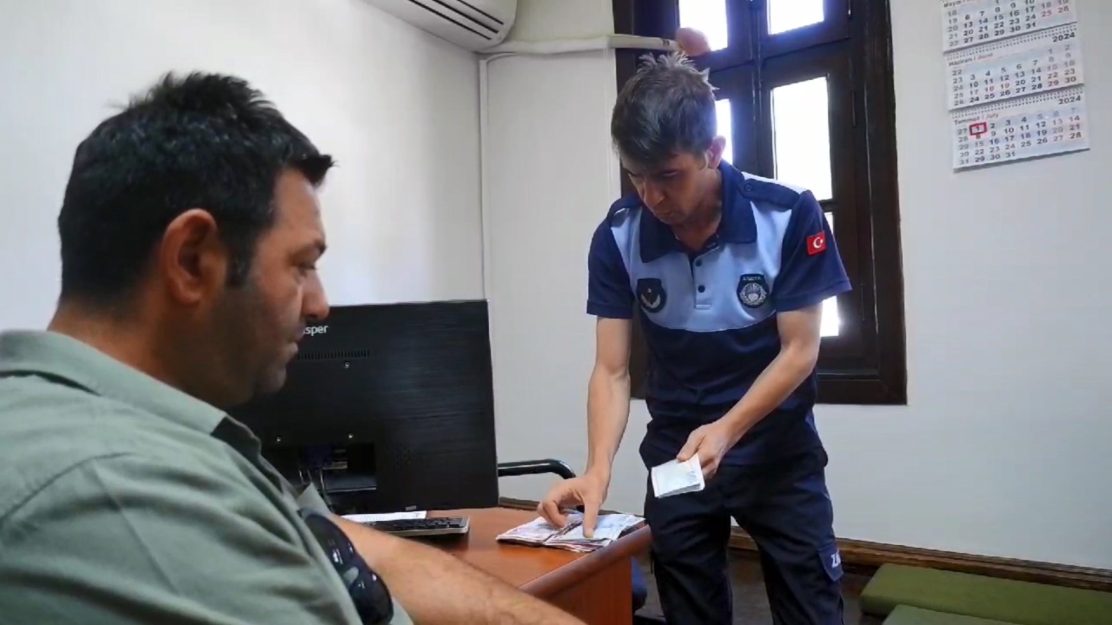 Edirne Belediyesi Destek Hizmetleri Müdürlüğü’nde şef olarak çalışan Emrah Özeren, Çilingirler Caddesi üzerindeki halka açık tuvalette, klozetin içerisinde bir miktar para olduğunu fark etti. Eline aldığı poşetle parayı klozetten çıkaran Özeren, durumu Edirne Belediyesi Zabıta Müdürlüğü ekiplerine haber verdi.