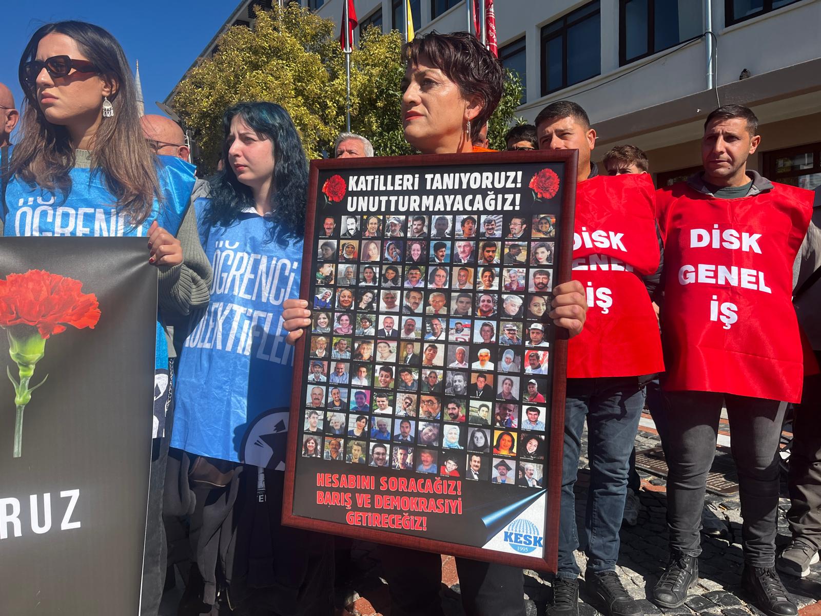 Söz veriyoruz, katliamın tüm sorumluları yargılanana ve hak ettikleri cezayı alana kadar öfkemizi diri tutacağız. Katliamın unutturulmak istenmesine izin vermeyeceğiz. Arkadaşlarımızın hesabını mutlaka soracağız. Onları işçi grevlerinde yaşatacağız. Onları kadın özgürlük mücadelesinde yaşatacağız. Ekoloji ve laiklik savunumuzda, adalet ve demokrasi kavgamızda yaşatacağız onları. Onları barış için ısrarımızda, 10 yıl önce haykırdıkları ‘Savaşa inat, barış hemen şimdi’ şiarında yaşatacağız. Er ya da geç, sorumlular cezalandırılacak; emek kazanacak, demokrasi kazanacak, barış kazanacak!