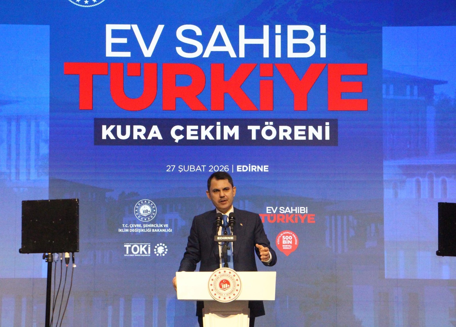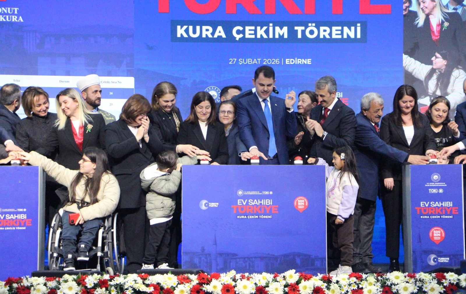 Çevre, Şehircilik ve İklim Değişikliği Bakanı Murat Kurum, Toplu Konut İdaresi (TOKİ) tarafından Edirne’de yapılacak 2 bin 530 sosyal konutun kura çekimine katıldı.