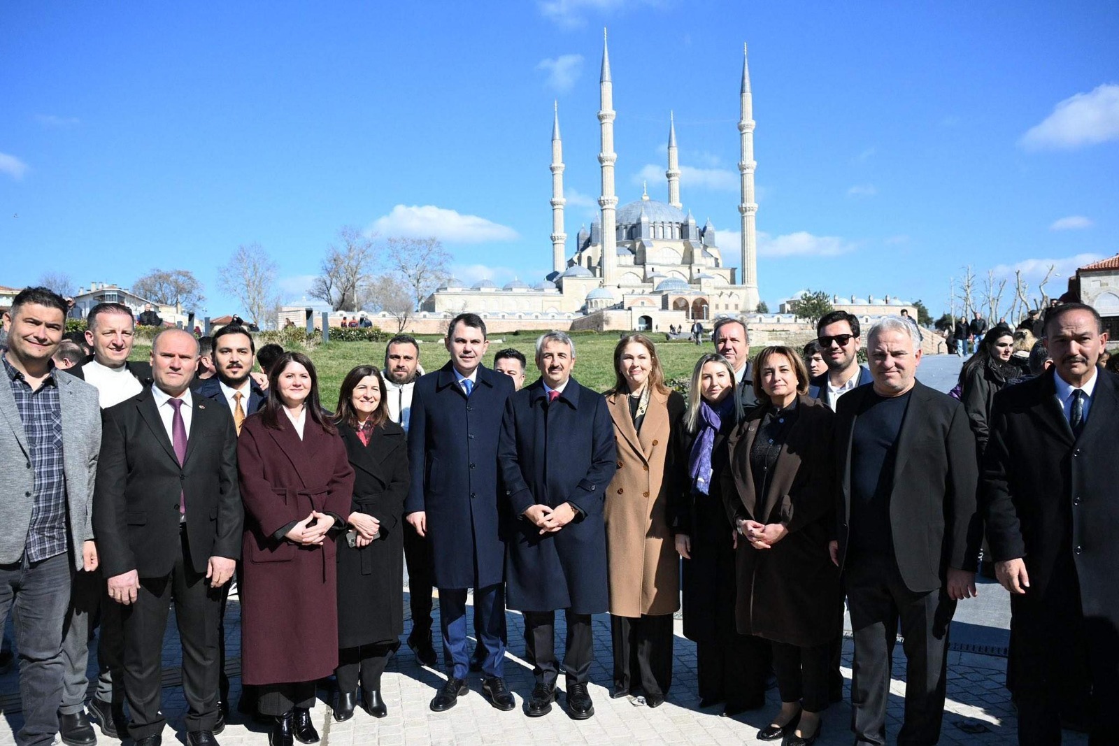 Edirne’ye 8 bin 597 konutu eğitimi, sağlık ve sosyal donatılarıyla birlikte şehre kazandırdıklarını belirten Bakan Kurum, “Bugün de yenilerini eklemek için kolları sıvıyoruz. Hamdolsun bu şehre neler yaptık neler, inanın saymakla bitmez. Şöyle hepinizin, her gün gördüğünüz, içerisinden geçtiğiniz bir kaç projemizi anlatmak isterim. “Sular Kenti Edirne” deki, ‘3 Nehir 1 Şehir’ projemizle; yerli ve yabancı binlerce turist için cazibe merkezi haline getirdiğimiz devasa bir alanı şehrimize kazandırdık. Meriç Nehri kenarında yürüyüş ve bisiklet yolları, kano alanları, kıraathaneler, kütüphaneler ve sosyal alanlara kadar; 7 gün 24 saat hizmet verebilen birçok hizmeti sizlere sunduk. 600 bin metrekarelik alana sahip bu projemizle beraber; Selimiye camiimizin meydan ve çevresindeki alanı da yeniden ihya ettik. Selimiye camimizin silüetini koruyan, yeşil alanlarıyla, aydınlatmasıyla, zemin düzenlemeleriyle; uzun yıllardır atıl durumda olan bu bölgeyi yaya odaklı, modern ve ferah bir görünüme kavuşturduk. Selimiye Camii’nin ihtişamını hamdolsun projemizin her santimine yansıttık. Yine Edirne deyince akla gelen ilk yerlerden olan Saraçlar Caddemizi de unutmadık. Burada da eser siyasetinin mührünü caddemizin her yerine nakşeden sokak sağlıklaştırma çalışmamızı yaptık; caddemizi ışıl ışıl, capcanlı bir görünüme kavuşturduk. Tarihi tescilli binalarımızı aslına uygun restore ederek o eserlerimizin güzelliğini gün yüzüne çıkardık” diye konuştu.
