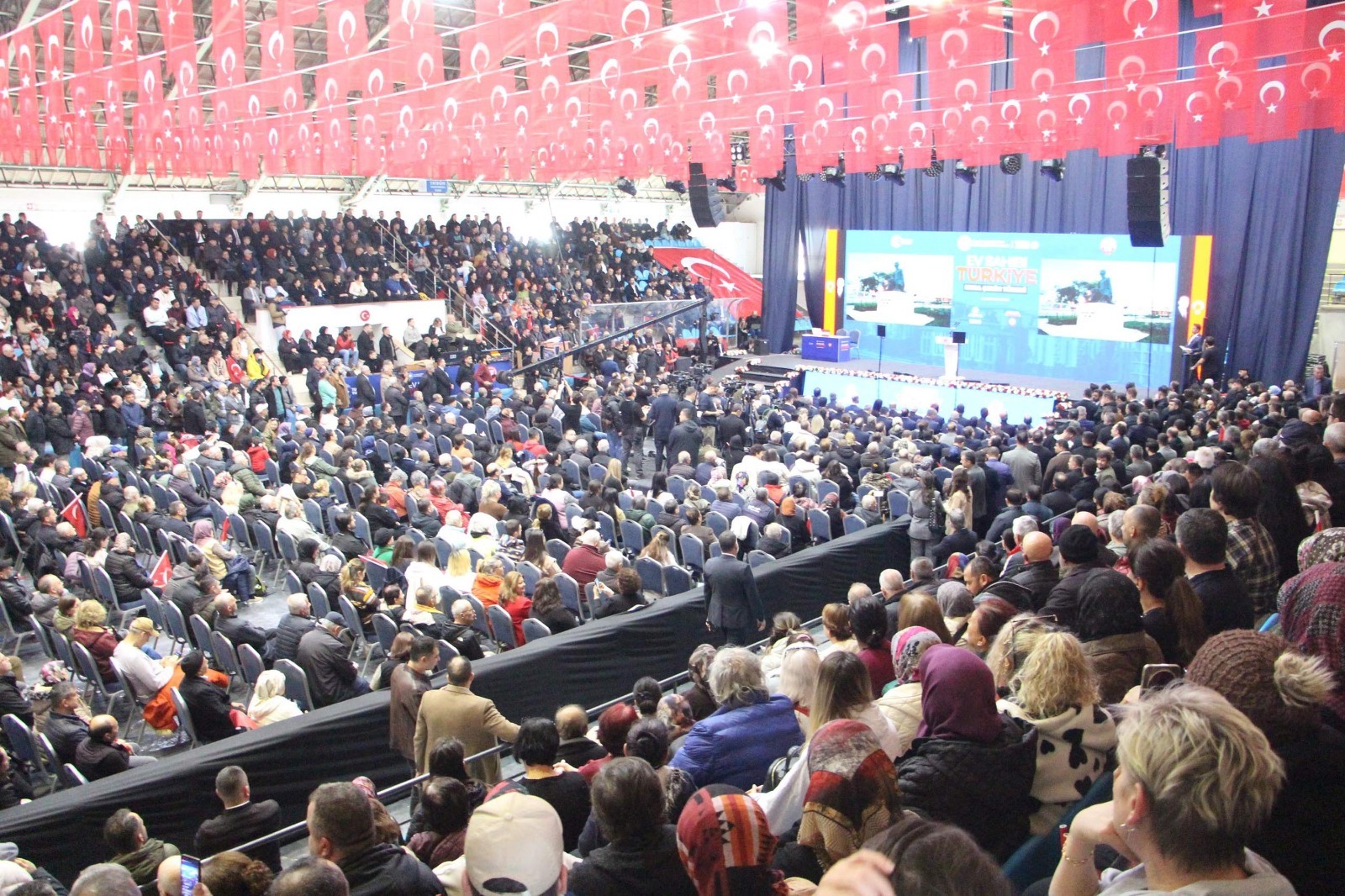 Asrın felaketi olarak kabul edilen Kahramanmaraş merkezli depremlerde 50 binden fazla canın kaybedildiğini hatırlatan Bakan Kurum, “Bu acı tablo karşısında asla karamsarlığa kapılmadık, “Asrın İnşa” sürecini başlattık. 200 bin mimarımızla, mühendisimizle, işçimizle; gece gündüz demeden afetzede kardeşlerimizi bir an önce sıcak yuvalarına kavuşturmak için 7 gün 24 saat çalıştık. 11 ilimiz de eş zamanlı çalışarak, bir Avrupa ülkesi büyüklüğündeki alanı yeniden inşa ettik; 455 bin yuvamızı 2 yıl gibi kısa sürede depremzede kardeşlerimize armağan ettik. Ve son kapanışta şunu söyledik; ‘Asrın İnşası, Türkiye’nin başarısıdır, asrın inşası Türkiye’nin yüzakıdır.’ Sadece afet sonrası değil, afete hazırlık kapsamında da sağlam adımlar atıyoruz. Kentsel dönüşümle bugüne kadar 2 milyondan fazla konutu dönüştürdük. Her iki dönüşümden birini İstanbul’da yapıyoruz. Çünkü biliyoruz ki, olası bir İstanbul depremi, bir milli güvenlik sorunudur ve yegâne çözüm yolu kentsel dönüşümdür. Bu anlayışla bugüne kadar İstanbul’umuzda tam 924 bin yuvamızı dönüştürdük. 300 bin bağımsız bölümün yapımına ise hızla devam ediyoruz. Burada tabi belediyelerimizin elini taşın altına koyması, vatandaşımızın dönüşümü istemesi hayati derecede önemli. Biz dönüşümü teşvik edecek her adımı atıyoruz” ifadelerini kullandı.