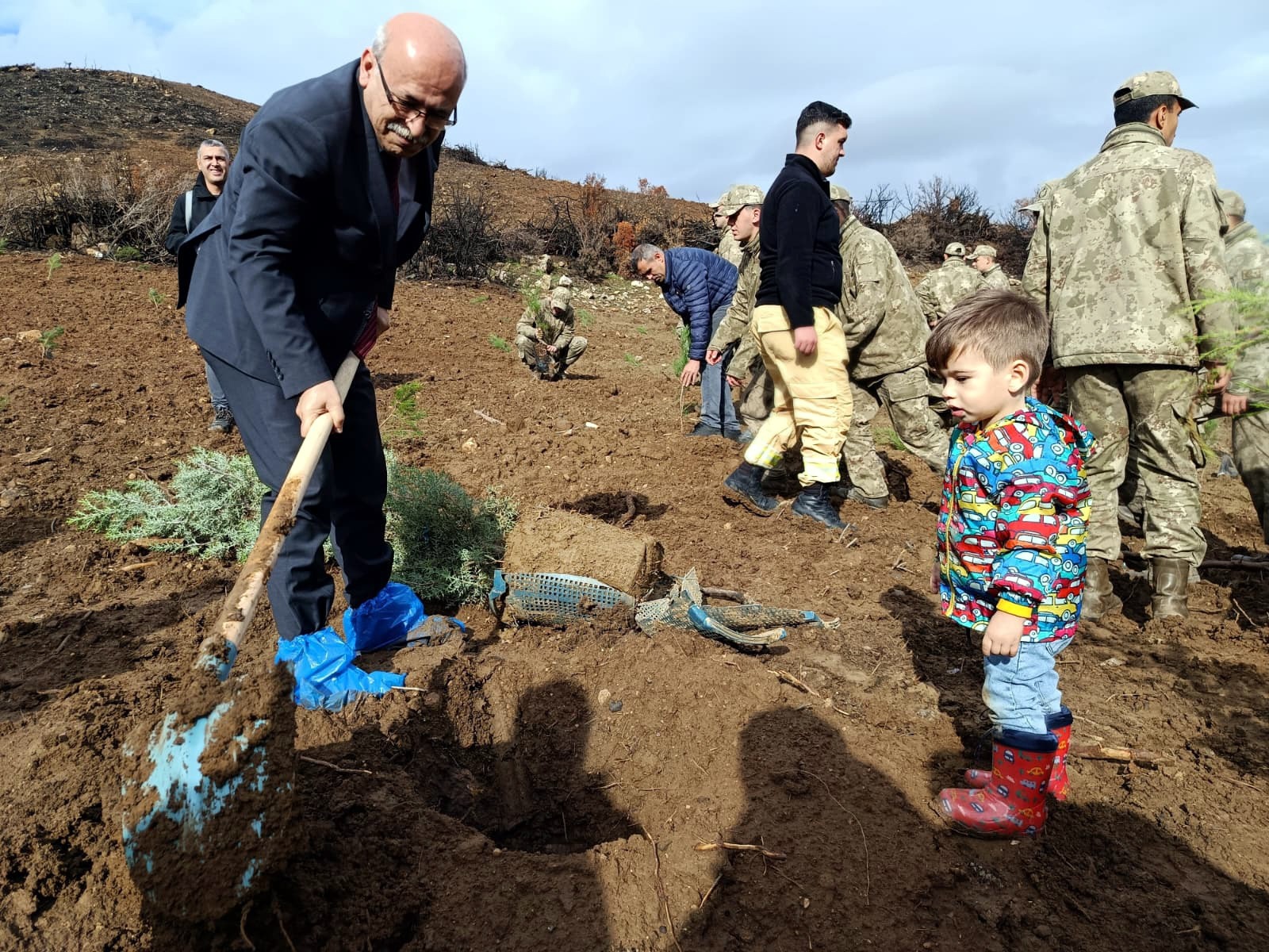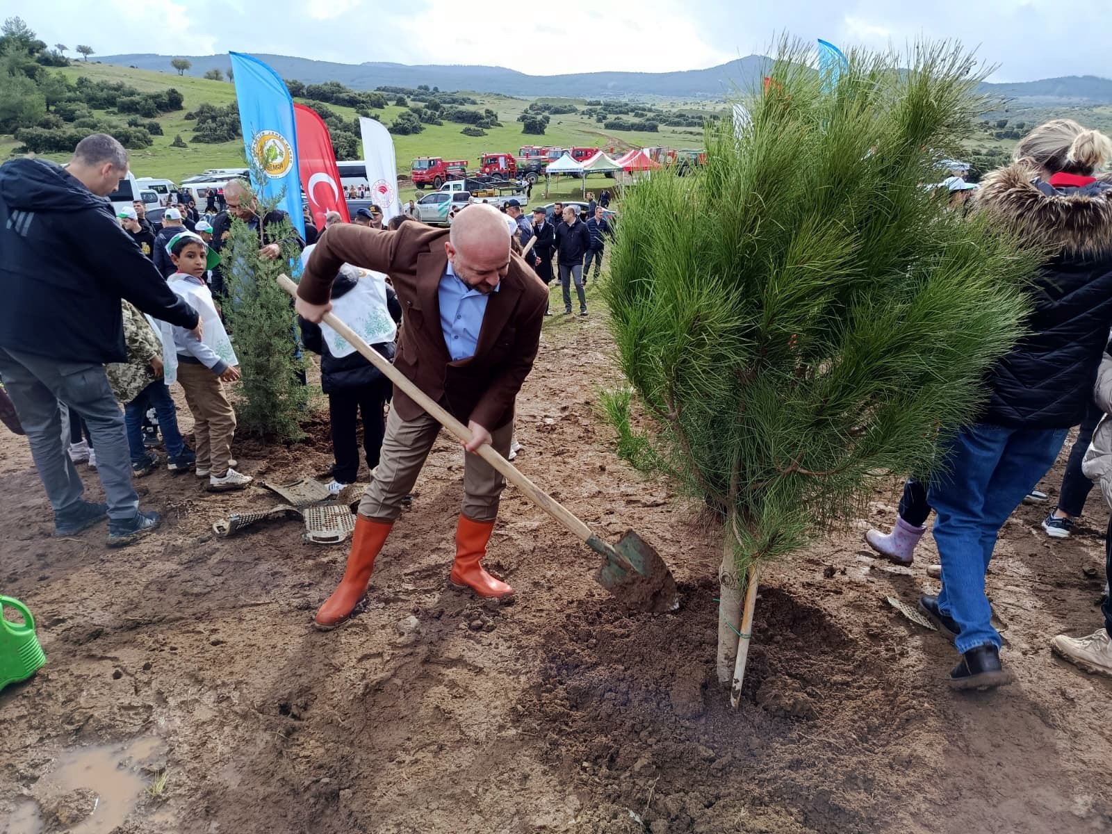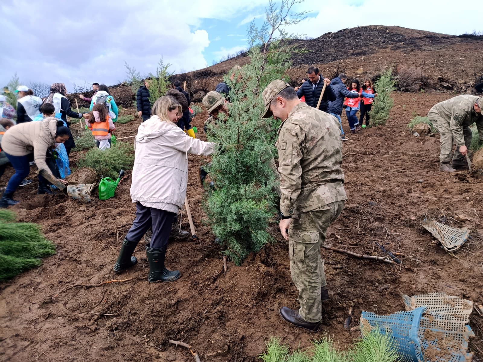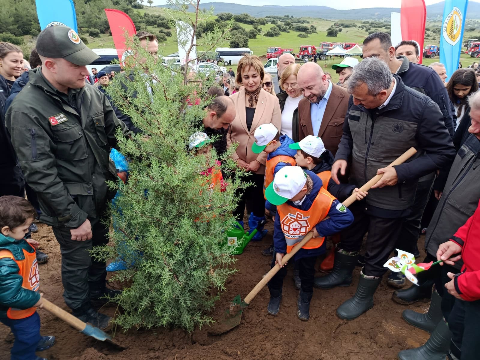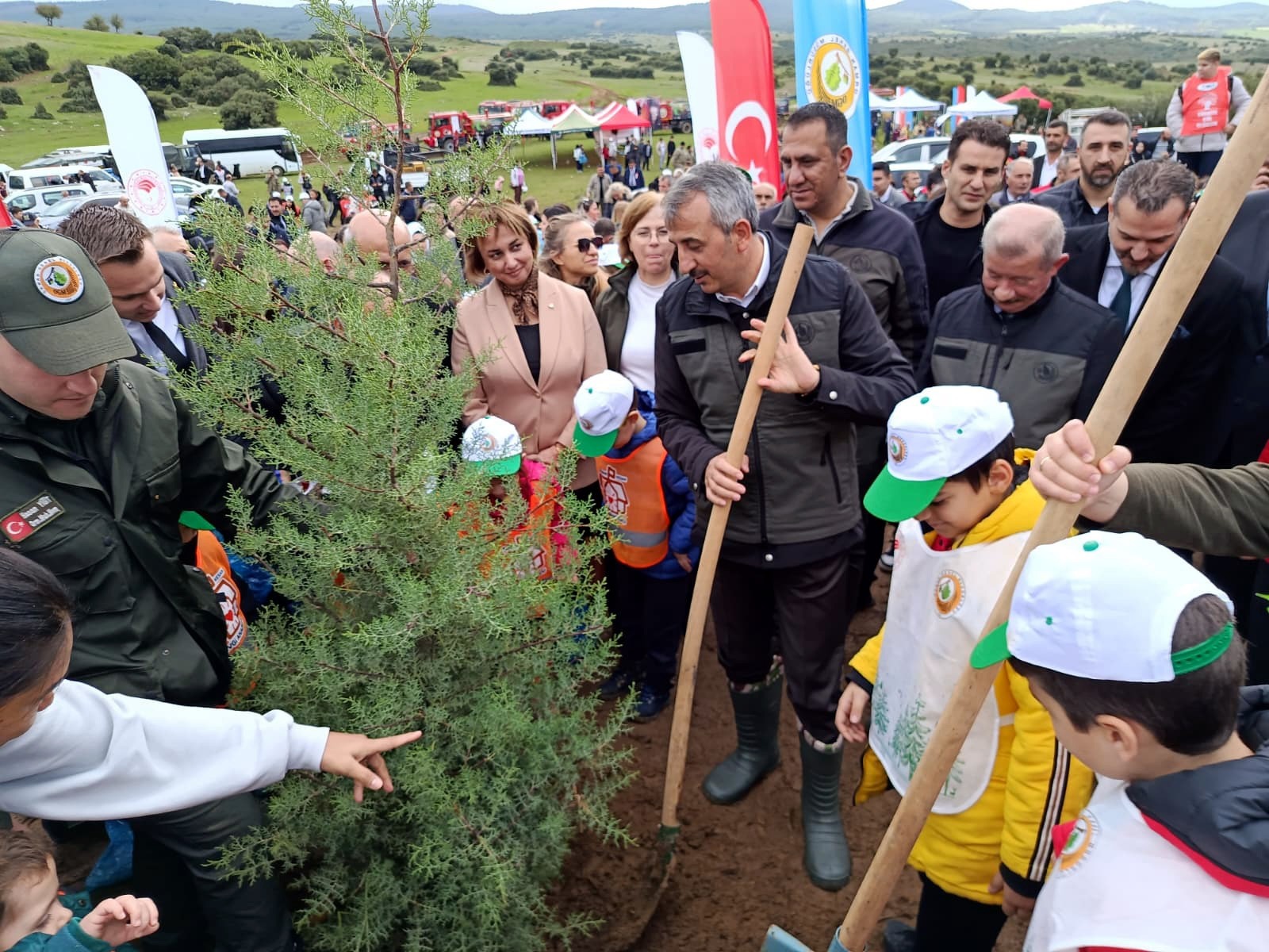 Tören sonrası Vali Yunus Sezer ve beraberindeki protokol, vatandaşlar ve öğrencilerle fidan dikti.