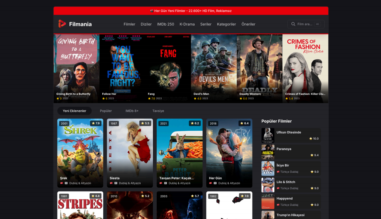 İşte tam bu noktada Filmania, film tutkunlarının aradığı güvenli liman oluyor. Geniş arşivi, hızlı