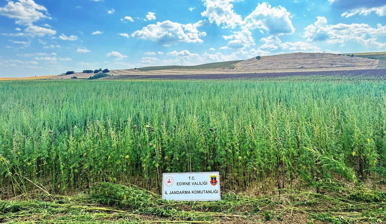 Edirne Merkez Avarız Köyü’nde bir kişinin tarlasında yapılan kontrol sonucu jandarma ekiplerince belirlenen 4 milyon 128 bin kök kenevir bitkisi imha edildi.