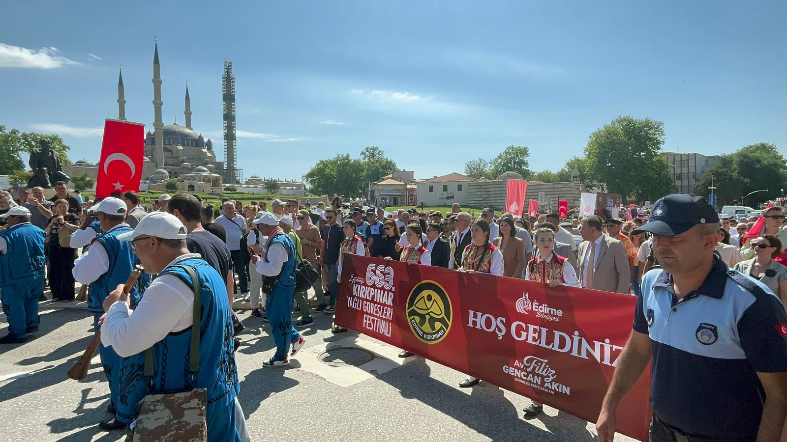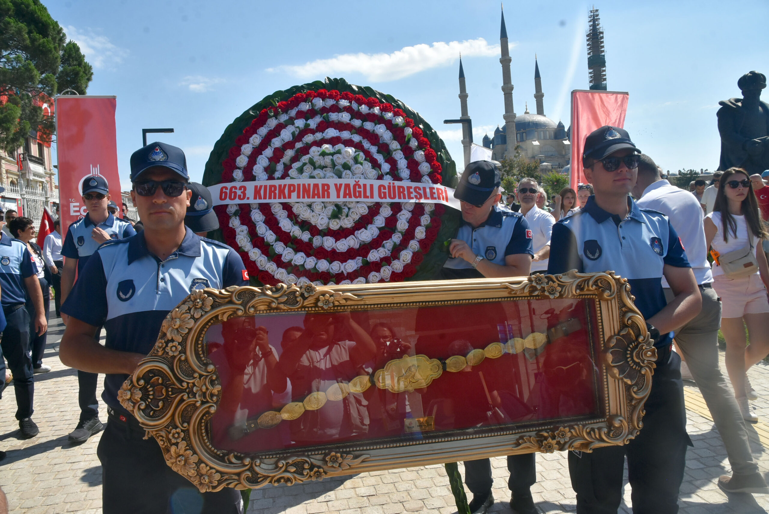 Edirne’de bu yıl 663’üncü kez düzenlenen Tarihi Kırkpınar Yağlı Güreşleri’nde, geleneksel ‘ağa karşılama’ töreni yapıldı.