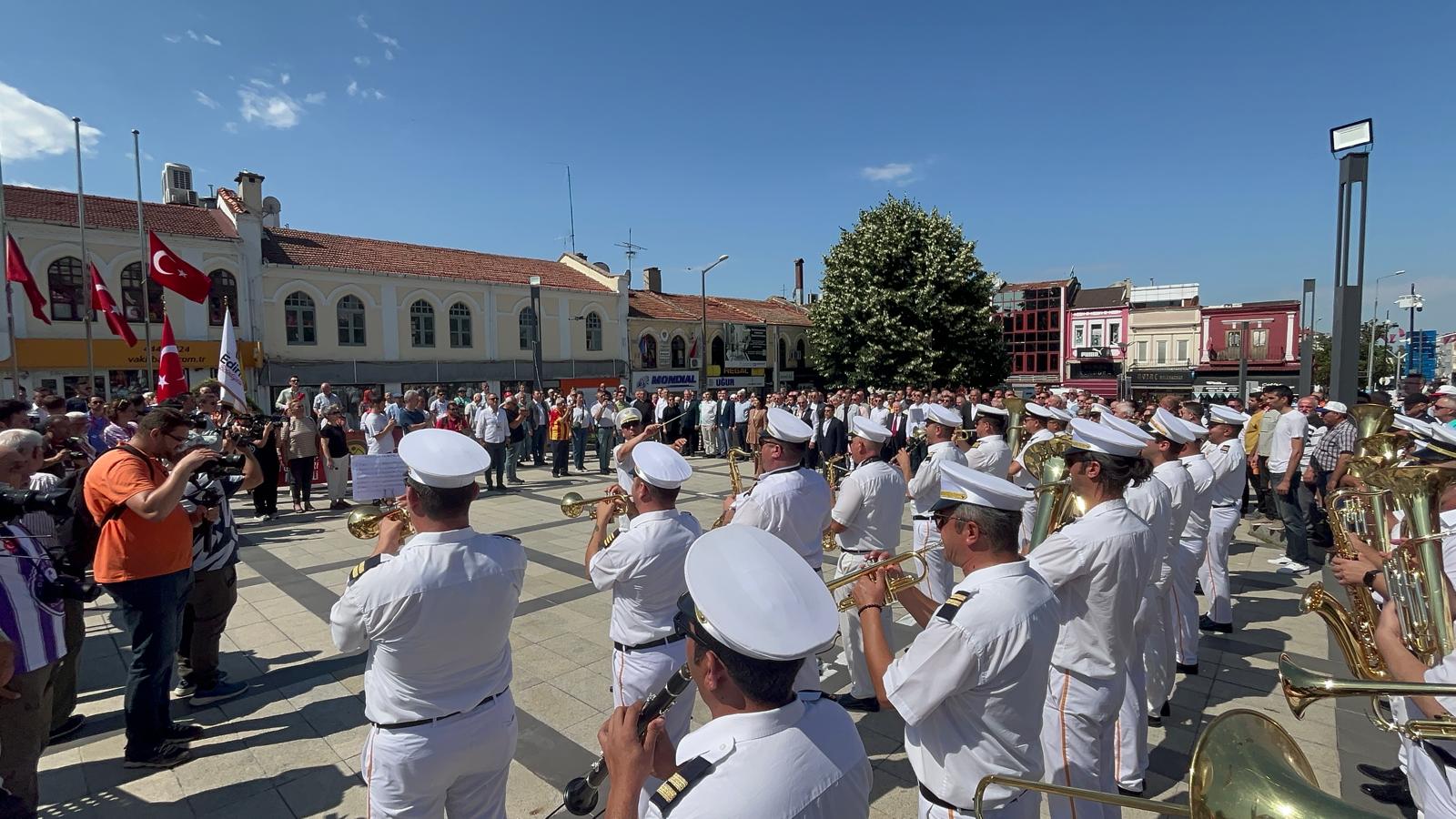 Konuşmaların ardından heyet kent merkezindeki Atatürk Anıtı’na geçti. Burada korteje Edirne Valisi Yunus Sezer de katıldı. Saygı duruşunda bulunulup, İstiklal Marşı’nın okunduğu törende heyet, anıta çelenk sundu. Söz ve müziği Beyazıt Sansı’ya ait Kırkpınar Marşı’nın okunduğu törenin ardından kortej, Pehlivanlar Mezarlığı’nı ziyaret etti.