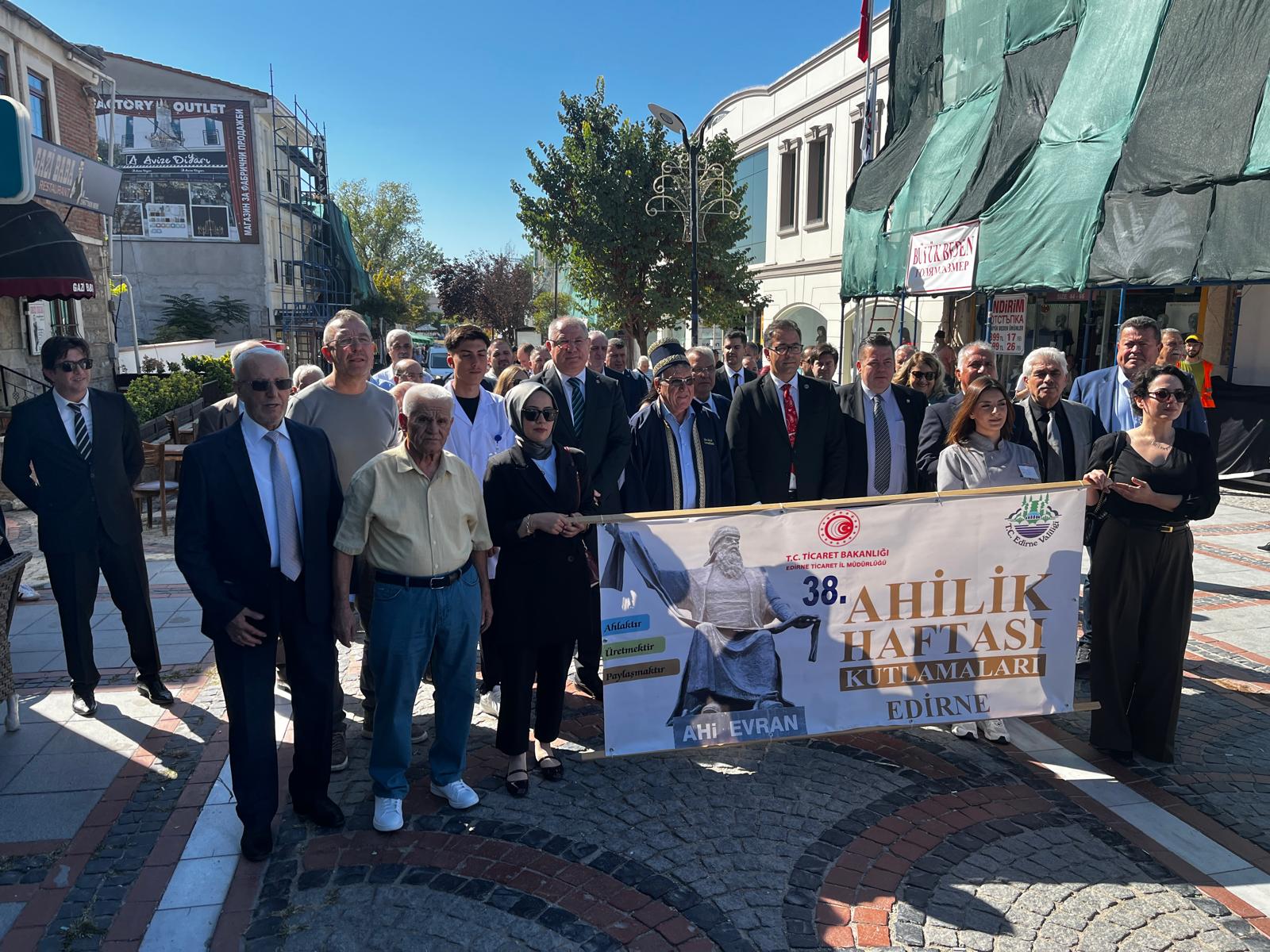 Ülke genelinde bu yıl 22-28 Eylül tarihleri arasında kutlanan 38’inci Ahilik Haftası, Edirne’de törenle başladı. Saraçlar Caddesi’ndeki 25 Kasım Stadı önünden Atatürk Anıtı’na kortej yürüyüşüyle start alan hafta kapsamındaki etkinliğe Edirne Vali Yardımcısı Ercan Çiçek, Edirne Belediye Başkan Yardımcısı Cenk Ergüden, Ticaret İl Müdürü Mustafa Kurt, Edirne Esnaf ve Sanatkar Odaları Birliği (EDESOB) Başkanvekili Selçuk Gül, yılın ahisi seçilen elektrik ustası Ferhat Kemallarlı, yılın kalfası Duha Akan, yılın çırağı Hüseyin Can Esen ile kurum temsilcileri katıldı. Yürüyüşün ardından Atatürk anıtına EDESOB tarafından çelenk sunuldu.