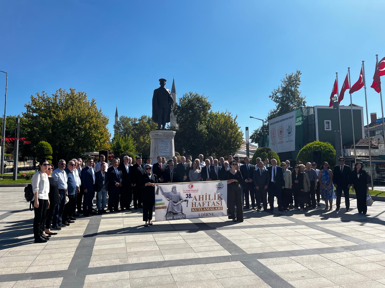 Edirne’de 38’inci Ahilik Haftası, gerçekleştirilen kortej yürüyüşü ve devamında Atatürk Anıtı’na çelenk sunumuyla başladı.