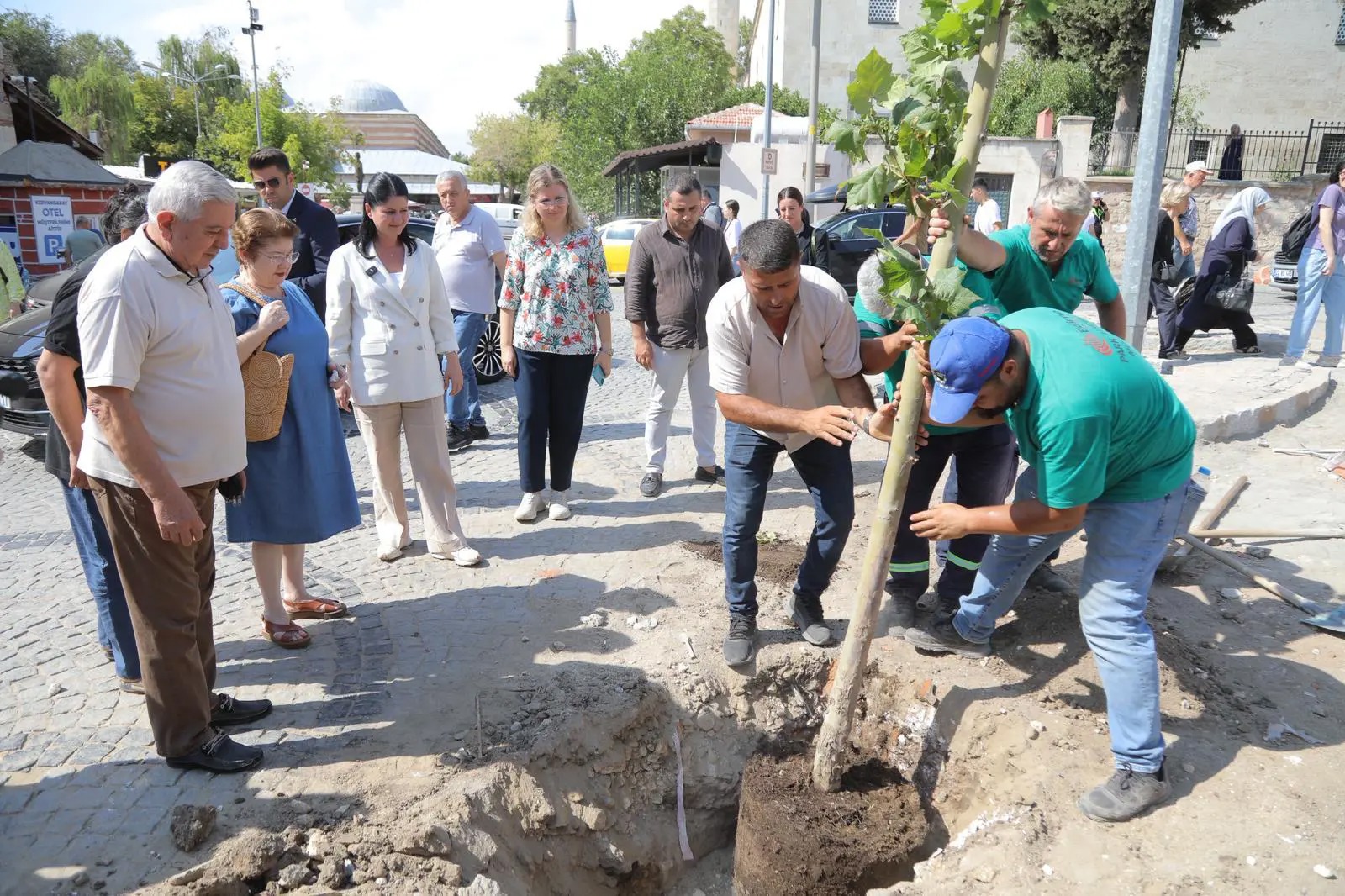 Edirne’de belediye ekipleri tarafından, köklerinin zayıfladığı ve tehlike oluşturduğu gerekçesiyle kaldırılan Sabuni Mahallesi’ndeki ceviz ağacının yerine, Belediye Başkanı Filiz Gencan Akın’ın da katılımıyla kesilen ağacı 100 yıl önce diken ailenin torunlarıyla birlikte çınar ağacı dikildi.