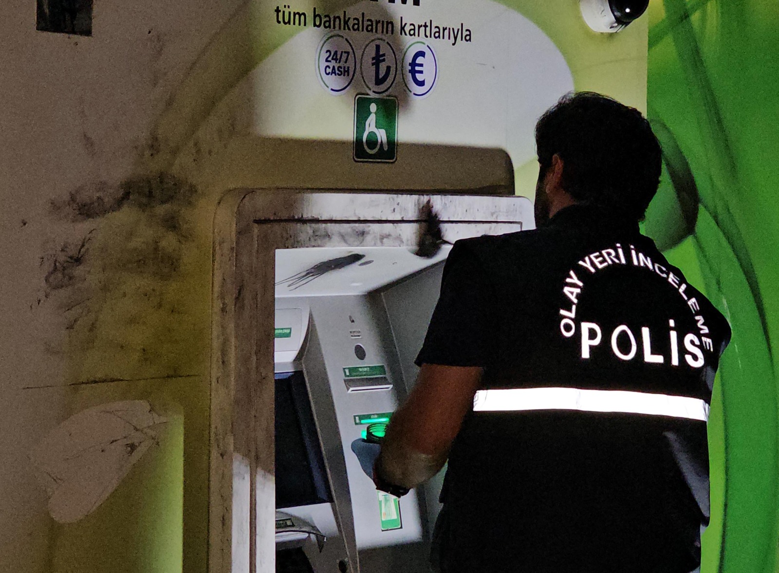 Sabuni Mahallesi Çilingirler Caddesi’ndeki bir ATM’nin yanına gelen Murat U., önce çevreyi kontrol etti, ardından da başındaki berenin yanı sıra yüzünü de maske ile kapattı. Para çalmak için ATM’nin kamerasını sprey boya ile kapatıp cihaza zarar veren Murat U., parayı alamayınca bölgeden uzaklaştı. Murat U.’nun ATM çevresinde inceleme yaptığı ve kamerayı sprey boya ile görüntü kaydetmesini engelleye çalıştığı anlar güvenlik kamerasına yansıdı.