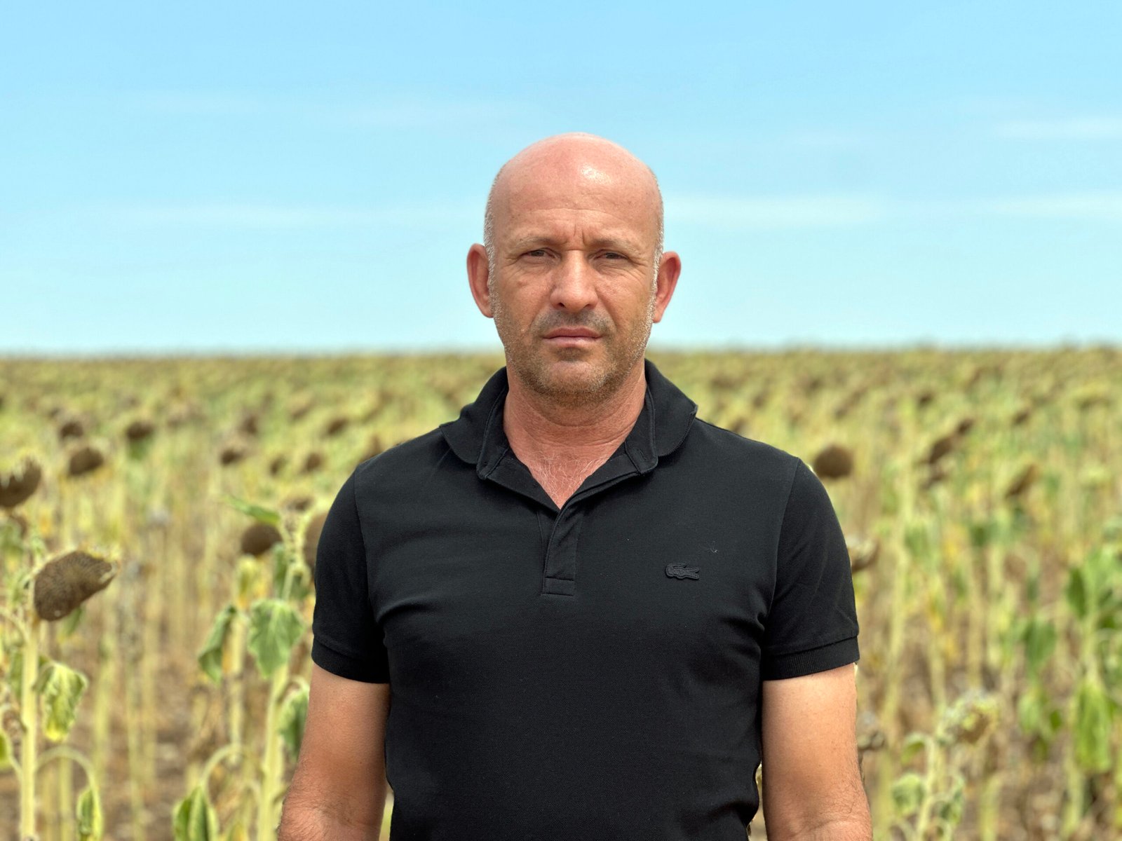 Edirne Ziraat Odası Başkanı Hüseyin Arabacı (Fotoğrafta), her yıl 15 Ağustos’ta başlayan ayçiçeği hasadının, kuraklık nedeniyle bu yıl erken başlayacağını söyledi. Fotoğraf: Umut IŞIK / Edirne, (DHA)