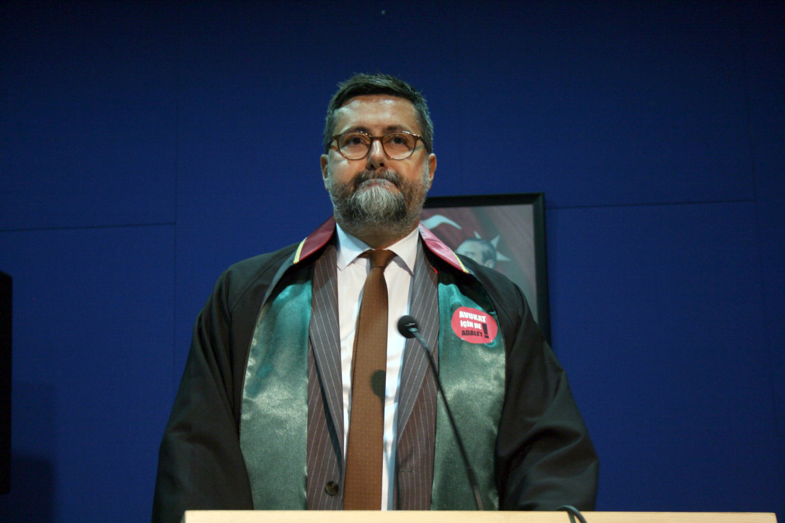 Törende konuşan Baro Başkanı Karakoç, ülkede geçtiğimiz dönemde Yargıtay ile Anayasa Mahkemesi arasında yaşanan yargı krizine dikkat çekti. Karakoç; “Yakın zamanda hepimizin tanık olduğu, ülkemizin yüksek yargı organları arasında çıkan krizde bile hâkim, savcı meslektaşların otoriter devlet yönetiminden korkup saklandığı, sindiği bir dönemde bile, ülkenin en yüksek yargı organının yani Anayasa Mahkemesi’nin hakkını korumak bile biz avukatlara düştü. Yakın coğrafyamızda Orta Doğu’da İsrail zulmü altında soykırım uğrayan mazlum Filistin halkının da, Diyarbakır’da kanımızı donduran Narin kızımızın da, Malkara’da vicdanlara sığmayan Sıla evladımızın da hakkını, hukukunu koruyanlarız. Ulu önder, eşsiz lider, büyük devrimci Gazi Mustafa Kemal Atatürk’ün sözünde de vurguladığı üzere, ‘Herhalde alemde bir hak vardır ve hak tüm kuvvetlerin üstündedir.’ İşte bu yüzdendir ki dünyanın siyasal tarihinin hangi sayfasına bakarsanız bakın, nerede ezilen bir sınıf mücadelesi, nerede bir adalet arayışı, nerede bir hak kavramı üzerinde birleşmiş bir topluluk varsa o topluluğun da o devrimin de başat öncülüğünü, liderliğini biz avukatlar yapmışızdır” şeklinde konuştu.