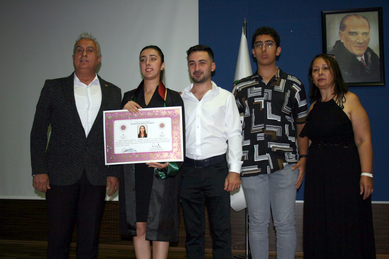 Baro Başkanı Av. Gökhan Karakoç, konuşmasının ardından Yaman’a meslek yeminini ettirerek, Av. Altan Yavuz ile birlikte cübbesini giydirdi ve meslek ruhsatını takdim etti. Törende konuşan Av. Hazal Yaman, kendisine destek verenlere teşekkür ederek; “Teşek-kürlerimi sonlandırırken bir şeye dikkat çekmek istiyorum; kimse kendi filminin ana karakteri olduğunu unutmamalı ve en doğru teşekkürü kendine etmelidir. Huzurunuzda hiçbir zaman ve koşulda yılmadığım, her zaman doğrularımda ve yanlışlarımda dik durduğum için kendime teşekkür etmeyi bir borç bilirim” ifadelerini kullandı.