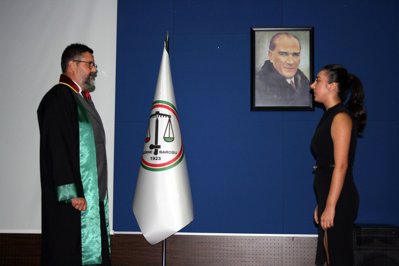 Edirne’nin Sabuni Mahallesi Muhtarı Aykut Yaman’ın kızı Hazal Yaman, tamamladığı staj eğitimin ardından Yaman, Edirne Barosu düzenlenen törenle yemin edip cübbe giyerek, mesleğe adım attı. Hazal Yaman için düzenlenen tören, Edirne Barosu konferans salonunda gerçekleştirildi. Saygı duruşunda bulunulması ve İstiklal Marşı’nın okunmasıyla başlayan törene Edirne Baro Başkanı Av. Gökhan Karakoç, baro yönetim kurulu üyeleri, merkez mahalle muhtarları, Yaman ailesi ve avukatlar katılım sağladı.