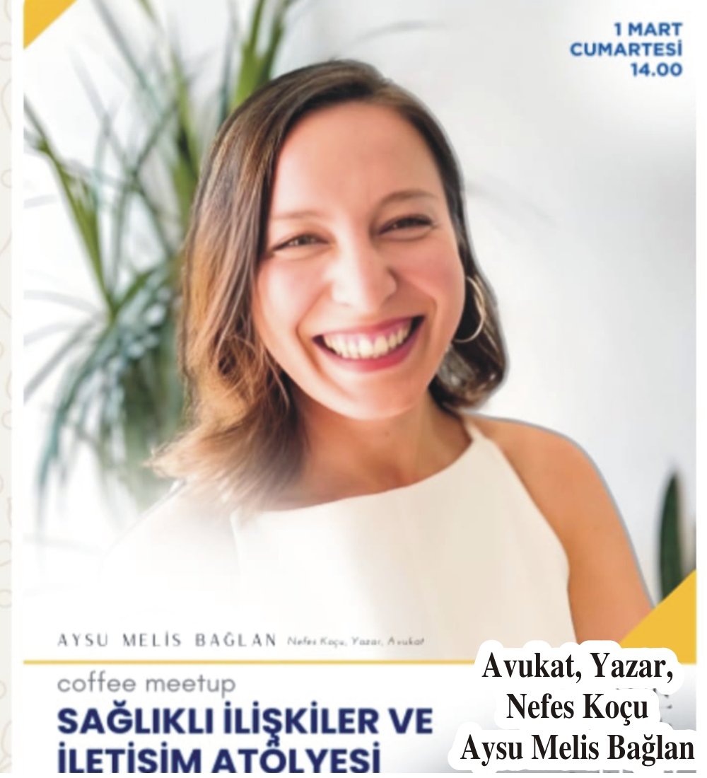 Avukat, Yazar, Nefes Koçu Aysu Melis Bağlan 1 Mart Cumartesi günü (yarın ) Oz Coffee & Books’ta Coffee Meetup Sağlıklı İlişkiler ve İletişim Atölyesi ile Edirnelilerle buluşacak. Edirne’de Bir İlk olacak atölye çalışması 1 Mart Cumartesi günü saat 14.00 ‘te başlayacak.