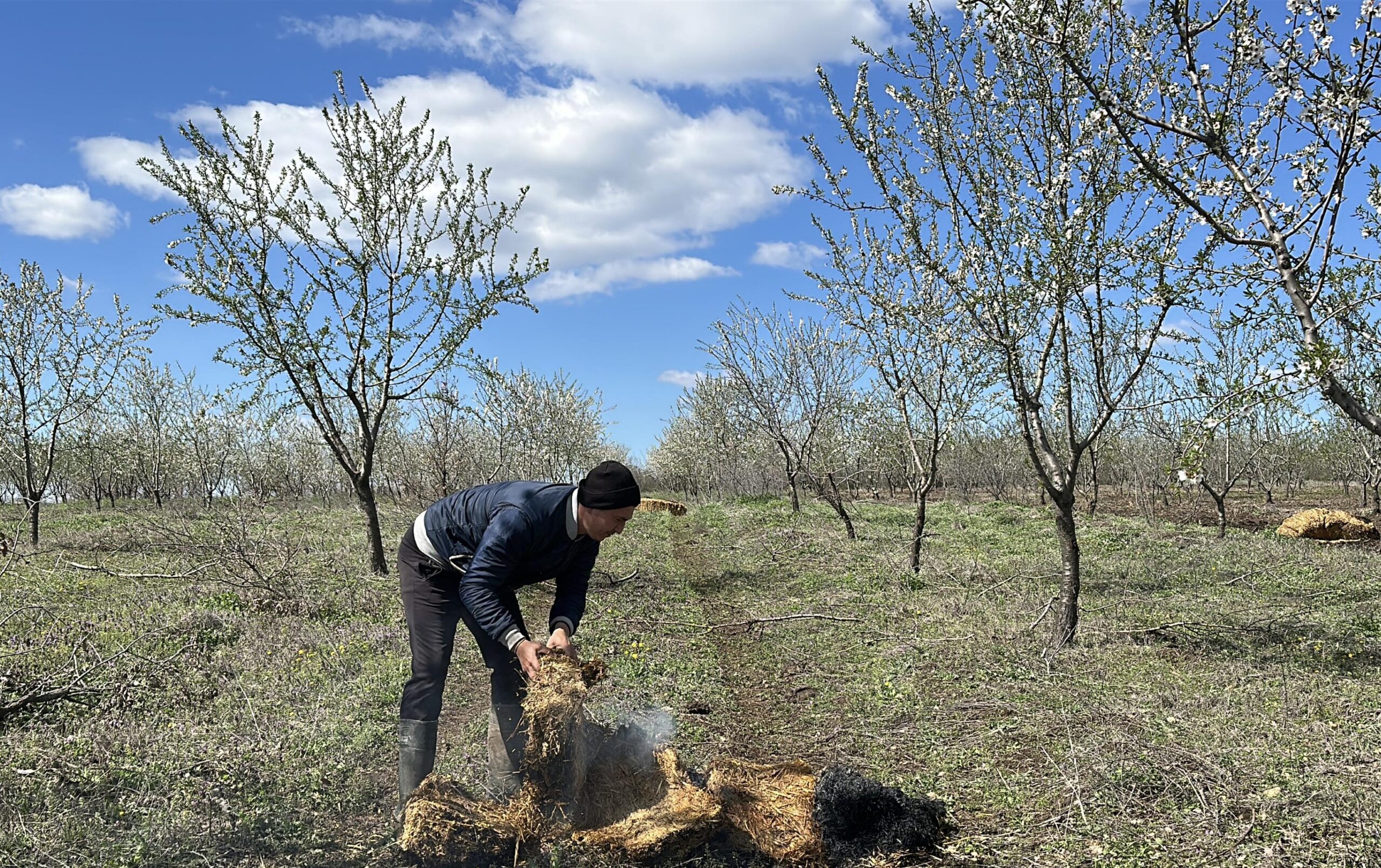 Muhtar Kaya, köyde Orman İşletme Müdürlüğü’nden 49 yıllığına kiralanan alanda, badem yetiştiriciliği yaptıklarını belirterek, “Badem ağaçları genelde 20-25 beş dereceleri görünce çiçek açar, meyveye gitmeye başlar. Bu yıl da aynısı oldu, çiçek açtı. Havalar eksi dereceye düşeceği için biz de kendimizce önlem aldık. Balya yaktık, nemli balya duman yapsın, kırağı düşmesin diye. Geçen yıl yüzde 50 verim kaybı yaşadık. Ortalama bayağı bir düştü. Bu yıl da bu önlemi aldık. Havaların soğuk gitmesiyle badem ağaçlarından büyük ihtimalle verim kaybı devamlı yaşanacak. Biz de Çömlekköy muhtarlığı olarak tek çözüm olarak balya yakıp dumanlama yapmayı gördük. Başka çaresi yok bu işin” dedi.
