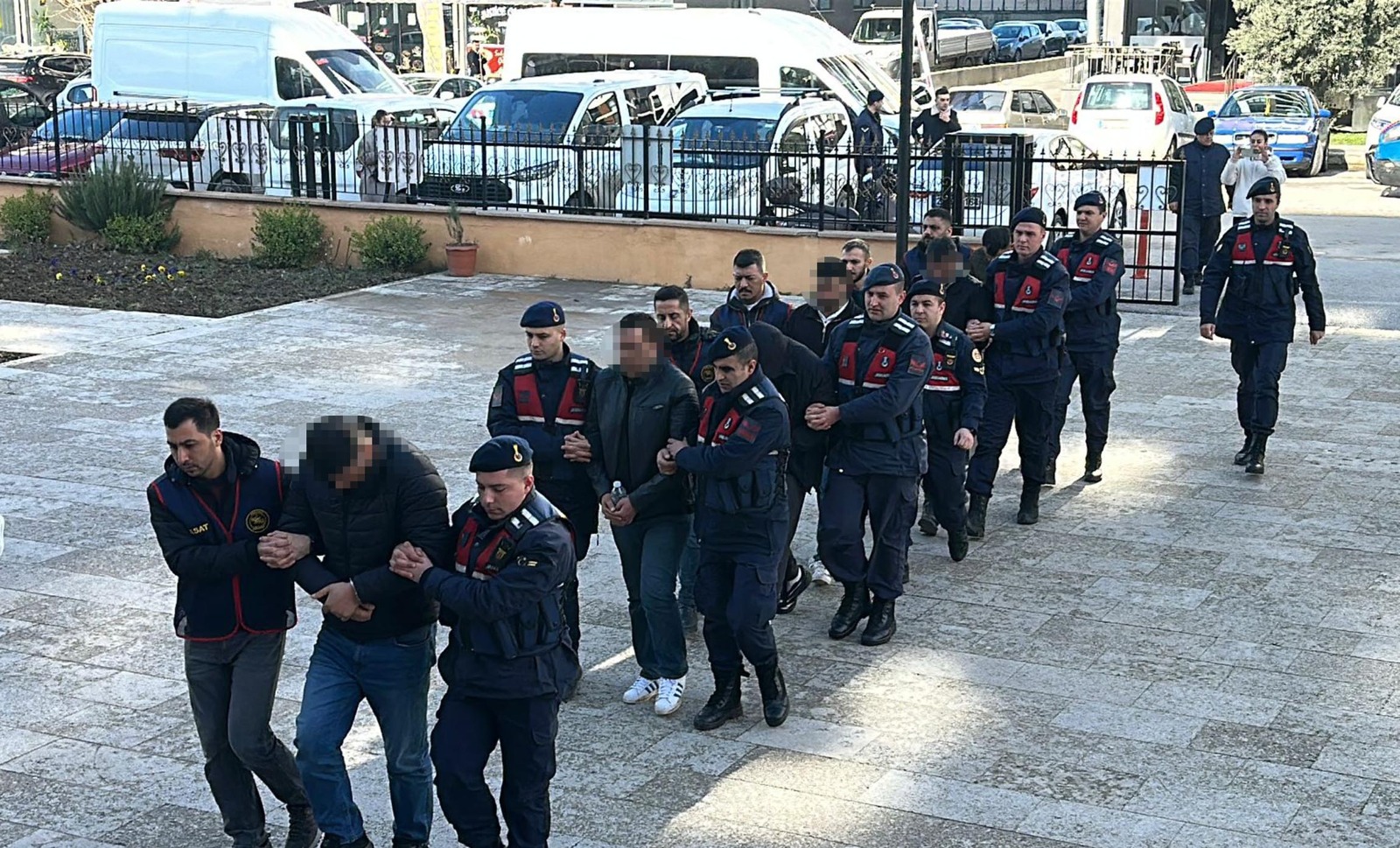 Yakalanan 6 şüpheli jandarmadaki işlemlerinin ardından, Edirne Adliyesi’ne getirildi.