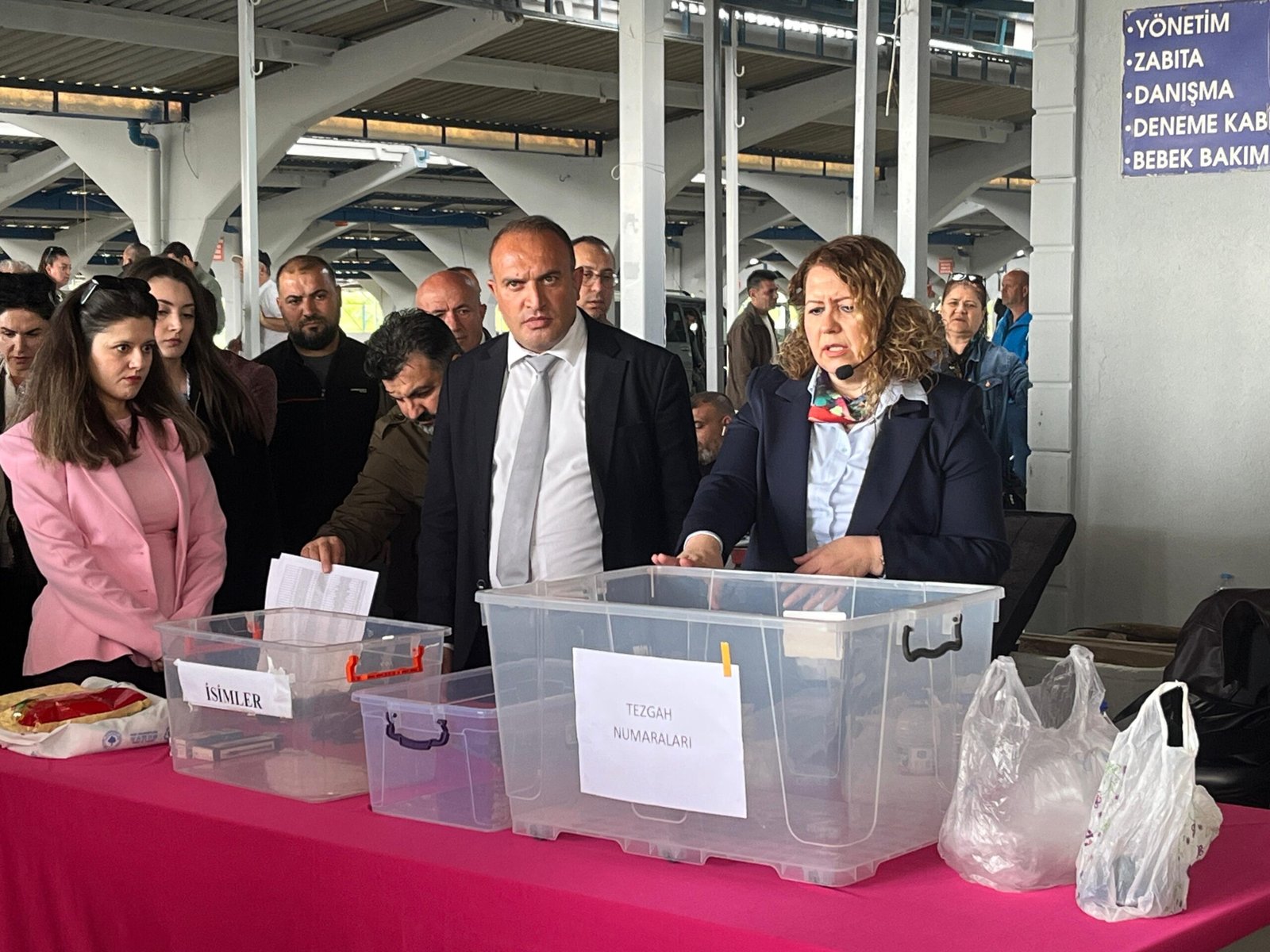 Gün boyunca yapılan çekilişle, adı çıkan esnafların daha sonra tezgahlarını açacağı yerler belirlendi. İsmi çıkan esnaflar, Pazar alanında kurulan masada sözleşmelerini imzaladı.