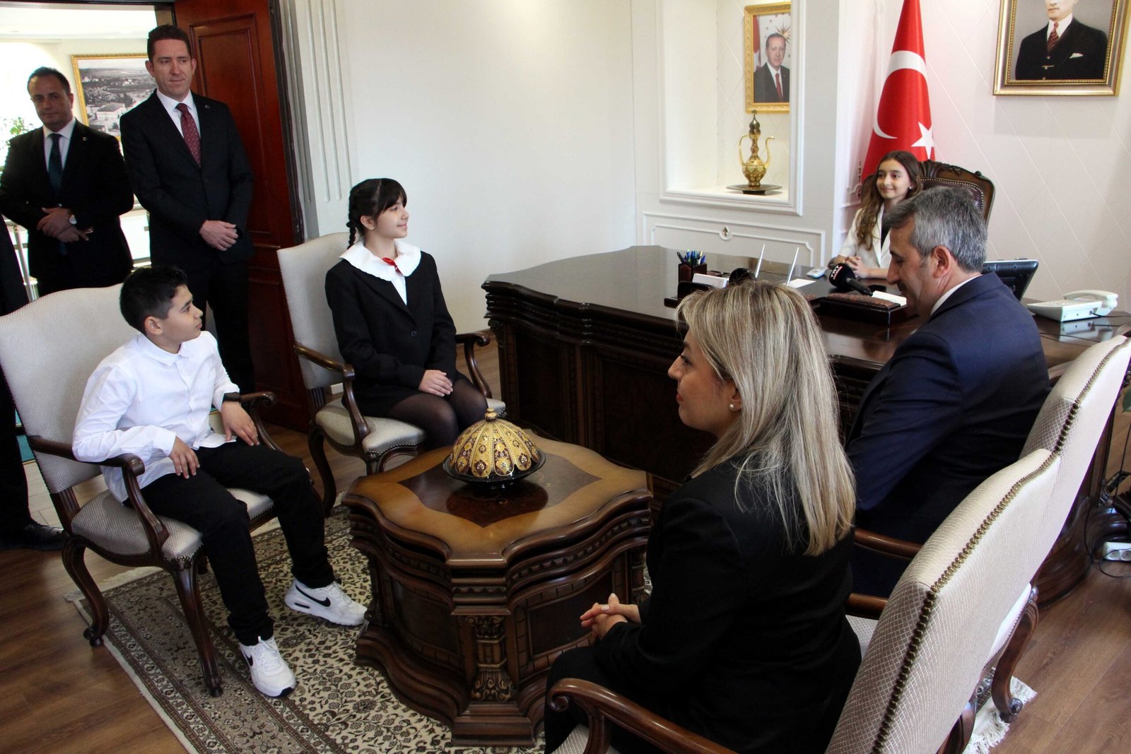 23 Nisan etkinlikleri kapsamında Vali Sezer daha sonra, 6 Balkan ülkesinden gelen 143 öğrencinin temsilcilerini ağırladı.