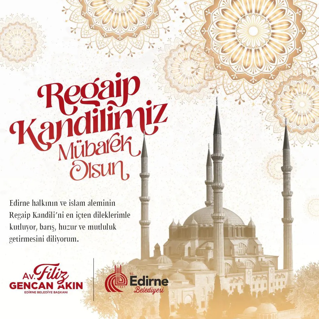 Edirne Belediye Başkanı Av. Filiz Gencan Akın, Regaip Kandili dolayısıyla bir mesaj yayınladı.