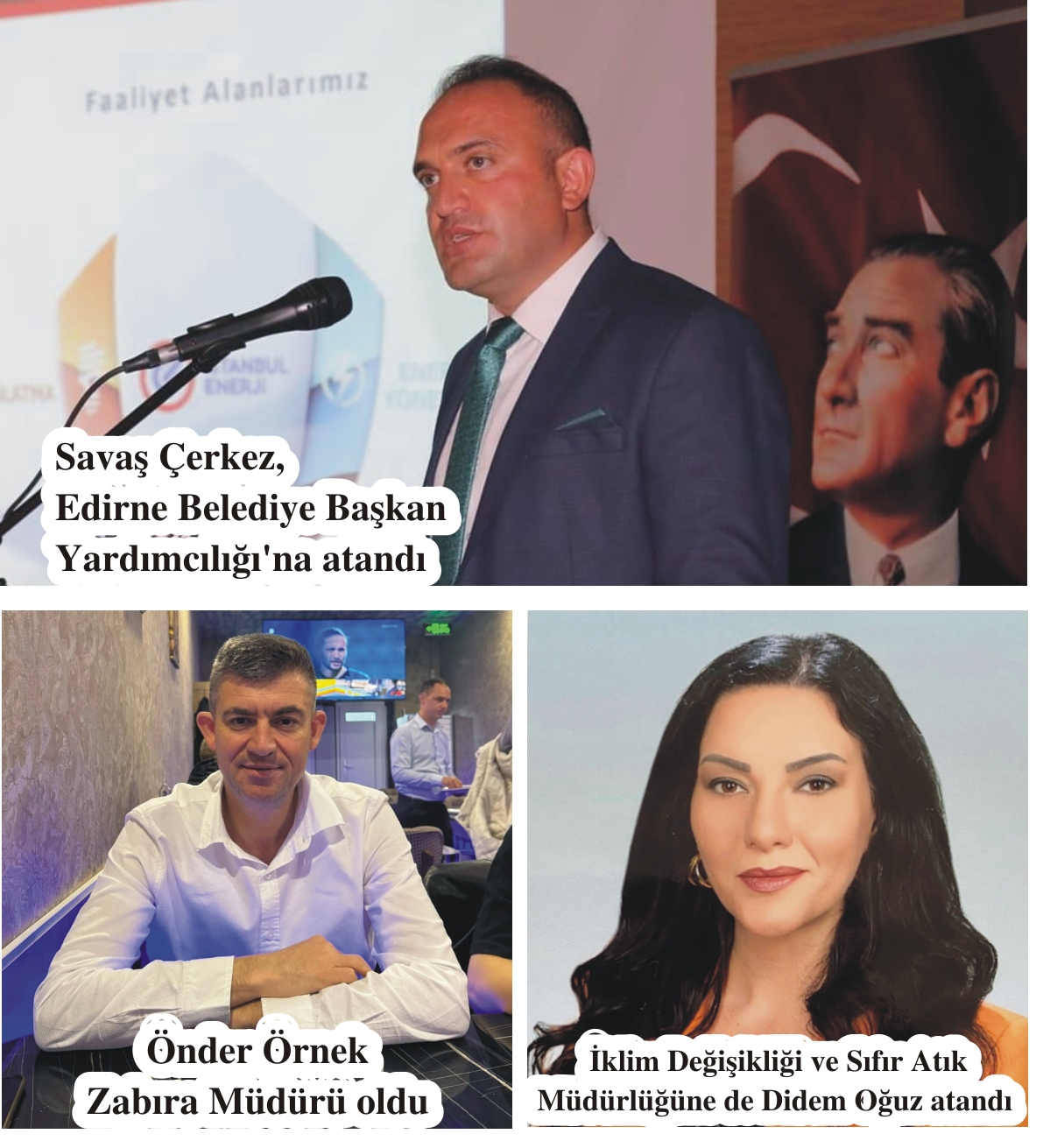 Edirne Belediyesi’nde, geçtiğimiz günlerde belediye başkanlığından emekli olan Tuncer Şeren’in yerine atanan isim belli oldu. Edirne Belediye Başkanı Filiz Gencan Akın, belediyede uzun süre çeşitli görevlerde bulunan, son olarak Zabıta Müdürlüğü görevini yürüten Savaş Çerkez’i, belediye başkan yardımcısı olarak atadı.