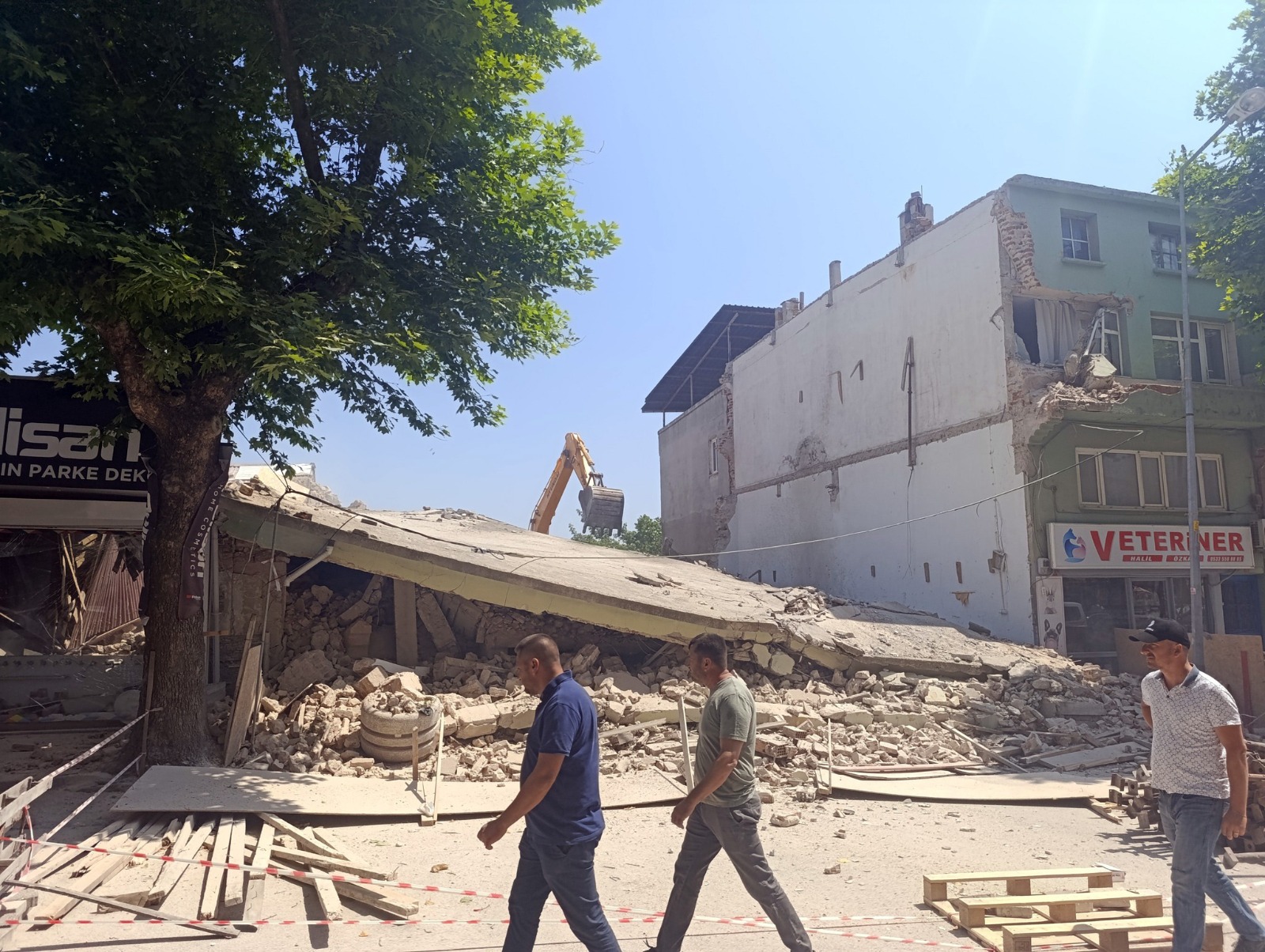 Edirne’nin Uzunköprü ilçesinde 2 katlı binanın yıkım sırasında çökmesi sonucu, etrafındaki bina ve iş yerinde hasar oluştu.