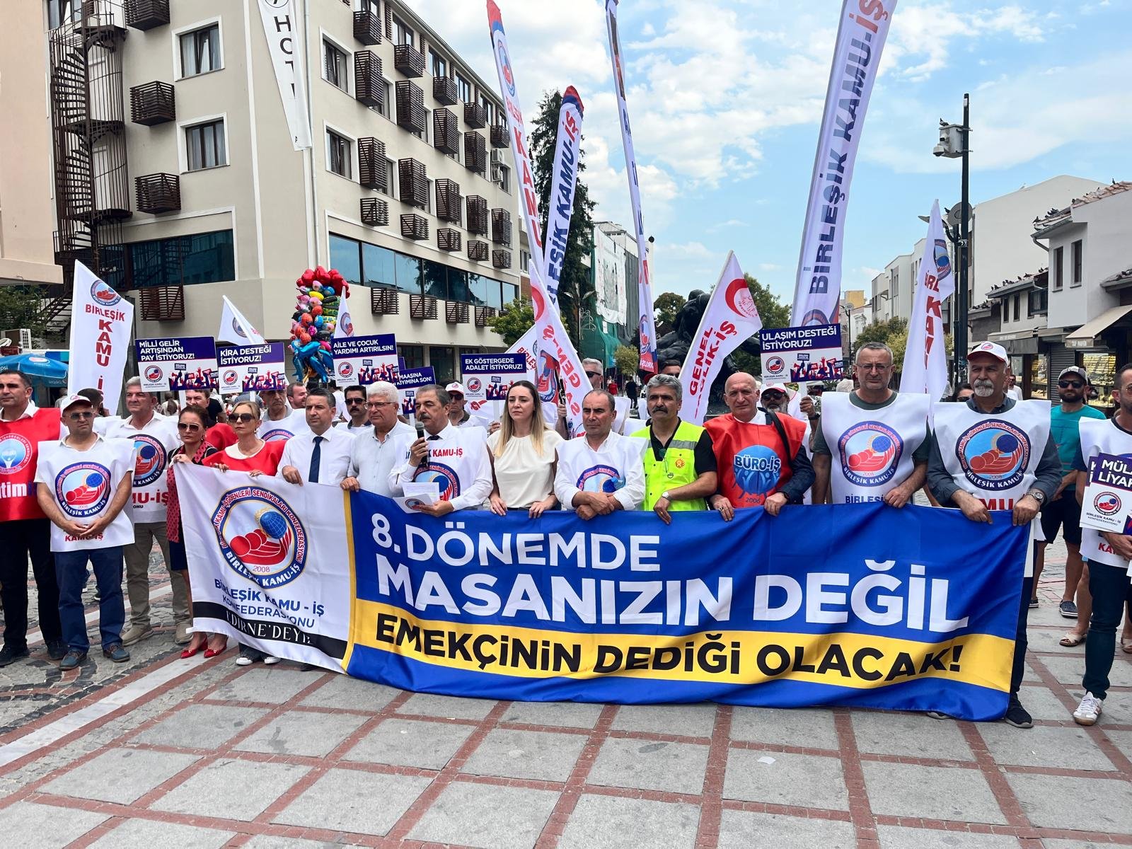 Toplu sözleşme görüşmeleri öncesi taleplerini de açıklayan Konfederasyon Başkanı Yıldırım, “Grevli toplu sözleşmeli sendika yasası istiyoruz. Enflasyon farkları aylık ödenmelidir. Yoksulluk sınırı üzerinde maaş istiyoruz. Ek ödemeler ve seyyanen ödemeler taban aylığa ve emekli maaşına yansıtılmalıdır. Yüzde 15 vergi dilimi sabitlenmeli. Mülakatla değil, liyakatle atama istiyoruz. Ücretli ve sözleşmeli değil, kadrolu ve güvenceli atama istiyoruz. Eşit işe eşit ücret istiyoruz. Kamu çalışanlarına ücretsiz kreş hakkı istiyoruz. Tüm memurlara çalıştıkları illerde kira desteği istiyoruz. Dereceye giren tüm memurlara 3600 ek gösterge hakkı verilmelidir. Aile yılında eş ve çocuk yardımı arttırılmalıdır” dedi.