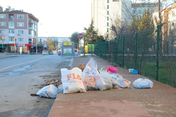 Ancak paylaştığımız fotoğraflarda da açıkça görüldüğü gibi; konteynerler hemen yakınındayken çöplerin kaldırım üzerine, yol kenarına ve yeşil alanlara bırakılması hem kent düzenine hem de verilen emeğe zarar veriyor.