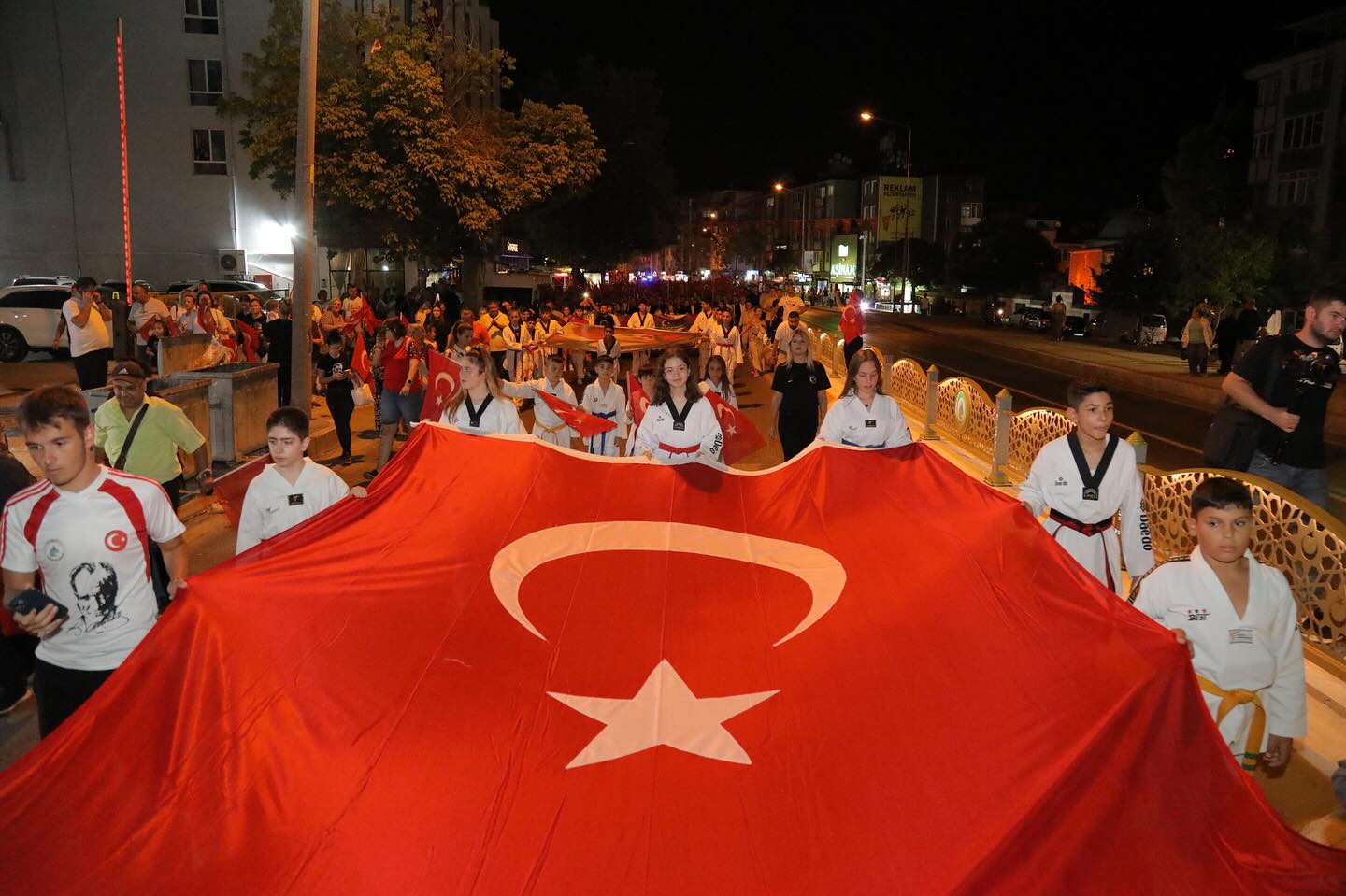 Edirneliler, ellerinde Türk bayrakları ve dillerinde “Yaşasın Cumhuriyet”, “Mustafa Kemal’in Askerleriyiz” sloganlarıyla yürüyüşe büyük destek verdi. Coşkulu kalabalık, zaferin ruhunu ve gururunu bir kez daha yaşarken, yürüyüş Atatürk Anıtı’nda Saygı Duruşu ve İstiklal Marşı’nın okunmasıyla devam etti. Edirne Belediye Bandosu’nun eşlik ettiği bu anlamlı etkinlik, halkı duygulandıran anlara sahne oldu.