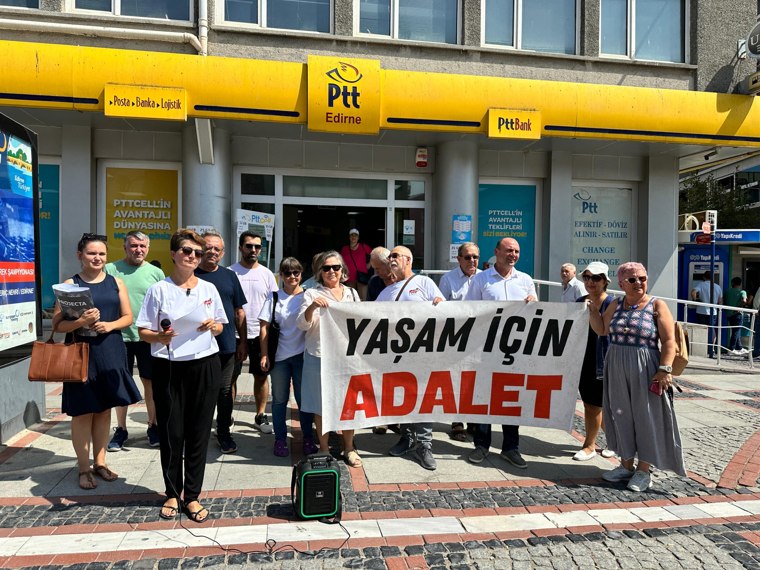 PTT Şubesi’ne girişte konuyla ilgili dernekler adına basın açıklamasını okuyan Kent Konseyi Hayvan Hakları Çalışma Grubu Başkanı Esen Öcel, eylemin Edirne’de hayvan haklarına yönelik gerçekleştirilen en geniş çaplı hareketlerden olduğunu dile getirdi. Öcel, “2004 yılından beri yürürlükte olan 5199 sayılı Hayvanları Koruma Kanunu’nda yapılan değişikliklere karşı durmak ve bu değişikliklerin iptalini talep etmek amacıyla başlattığımız bu kampanyamızda önemli bir aşamaya geldik. Her aksam 18:00-19:00 saatleri arasında Edirne Saraçlar Caddesi’nde tüm yasam hakki savunucular ile bir araya gelerek topladığımız imzalarla, hayvanların haklarının savunulması adına güçlü bir ses oluşturduk. Ağustos ayının sonu itibariyle toplanan imzalar Türkiye Büyük Millet Meclisi’ne ileteceğiz ve hayvanların yaşam hakkının korunması adına gerekli tüm adımların atılması için baskılarımızı sürdüreceğiz. Bu mücadele, yalnızca hayvanları koruma yasasının yeniden ele alınması için değil, aynı zamanda toplumun her kesiminden insanın hayvanların yaşam hakkına sahip çıkması gerektiğine dair farkındalığı artırmak için de büyük bir önem taşıyor. Hayvanlar, sessiz dostlarımızdır ve onların sesi olmak bizim en temel görevlerimizden biridir” dedi.