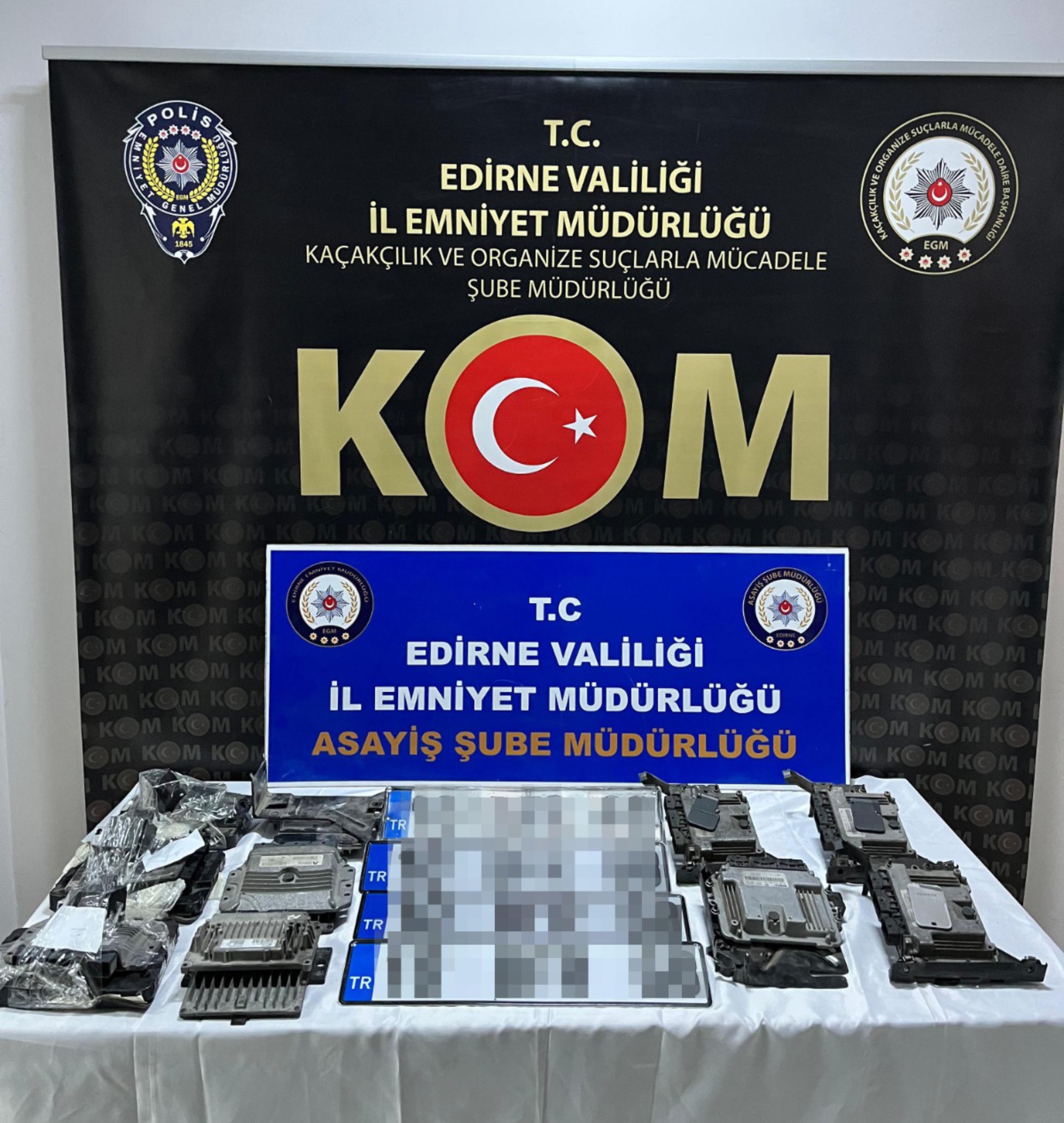 Polis, çalışmanın ardından şüphelilere yönelik Edirne, İstanbul, Tekirdağ’ın Çorlu ilçesi ve Kırklareli’nin Lüleburgaz ilçesinde 7 adrese eş zamanlı operasyon düzenledi. Operasyonda 4’ü Türk, 4’ü Bulgaristan vatandaşı 8 şüpheli yakalayarak, gözaltına alındı. Şüphelilerden A.E.’nin İstanbul, M.S.’nin Çorlu’daki iş yerlerinde yapılan aramalarda, 2 araç, 11 araç beyni, 8 yabancı araç belgeleri, 3 oto immobilizer, 6 araç anahtarı, elektronik kilit tertibatı, 4 adet 10 BFR 68 plaka ele geçirildi.