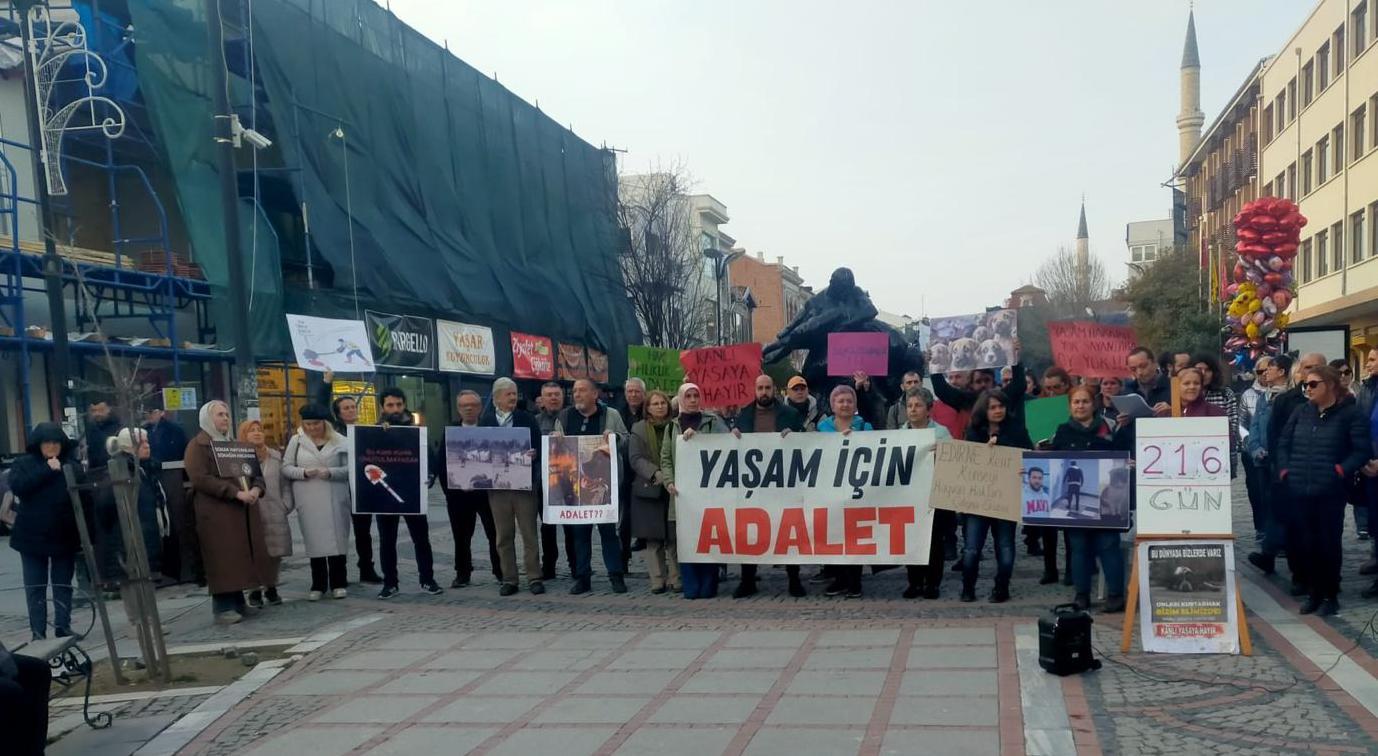 Edirne Kent Konseyi Hayvan Hakları Çalışma Grubu’nca Edirne İl Hayvanları Koruma Kurulu’nca 16 Aralık Salı günü gerçekleştirilecek toplantı öncesi Edirne merkezde toplanan canların barınağa değil ölüme gittiğine dikkat çekerek, buradaki koşulları düzeltilene ve günlük ortalama 10 olan ölüm sayısı durana kadar hayvan toplamalarına ara verilmesi çağrısında bulunuldu.