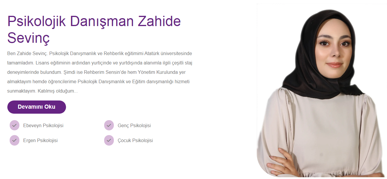 Çocuk psikolojisi hizmetlerinden yararlanmak ve Zahide Sevinç’in sunduğu yaklaşımlar hakkında daha detaylı bilgi almak için Detaylı Bilgi İçin Tıklayınız.
