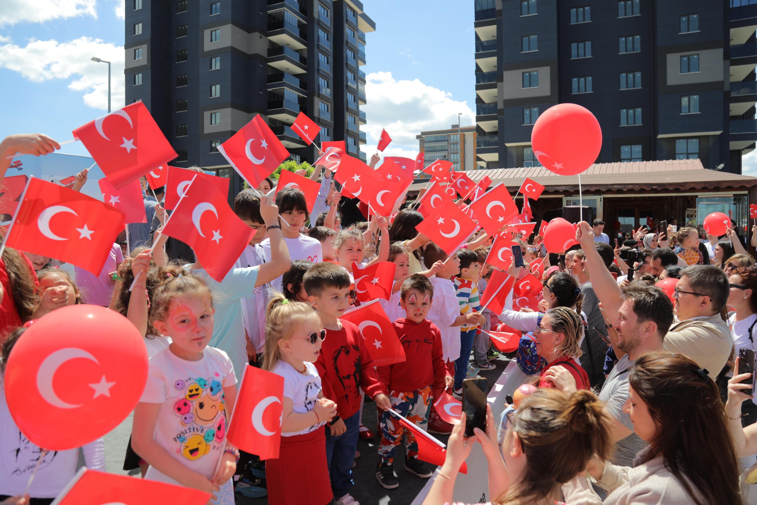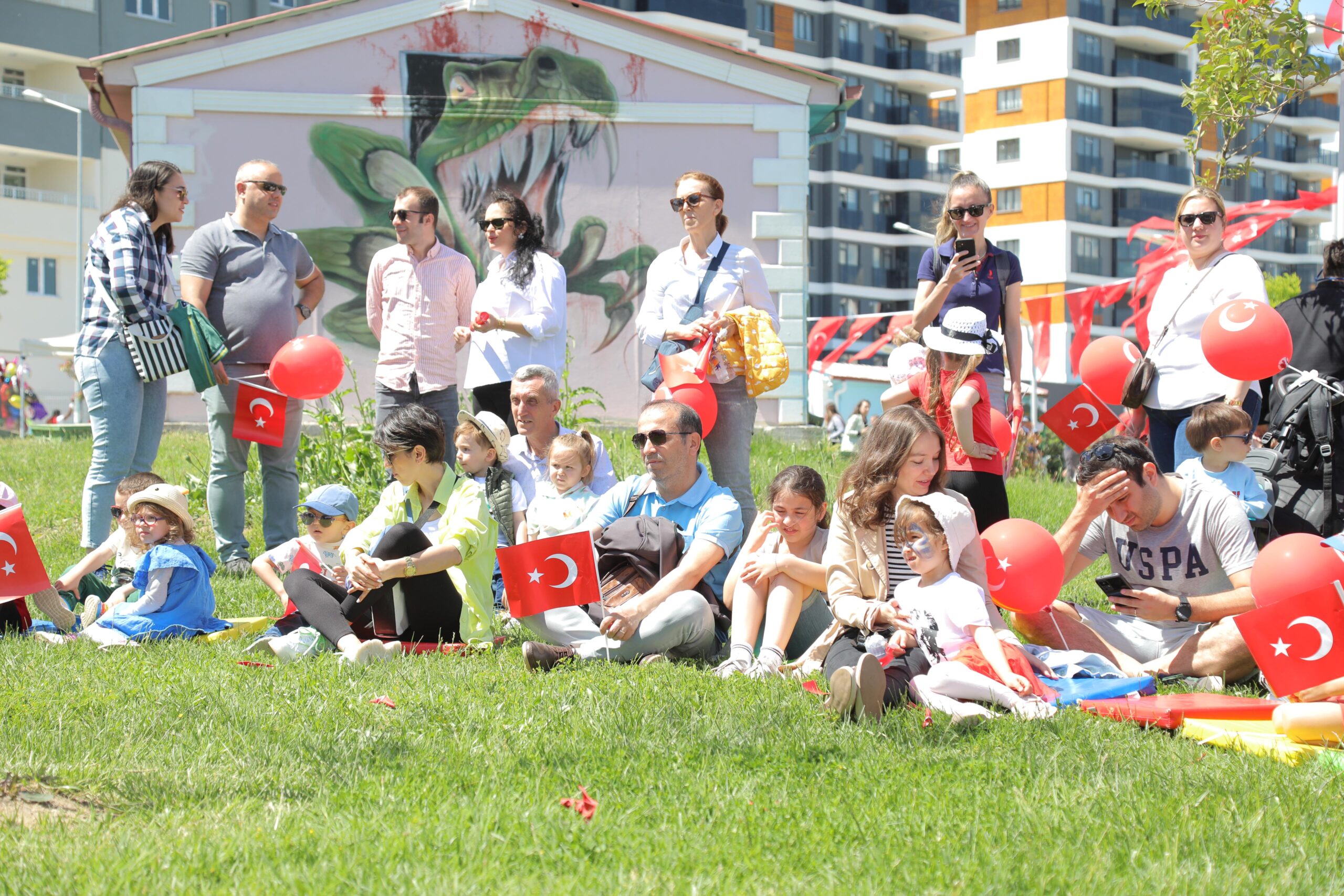 Türkiye Büyük Milet Meclisi’nin kuruluş yıl dönümü ve Ulu Önder Gazi Mustafa Kemal Atatürk tarafından çocuklara ithaf edilen dünya üzerindeki tek bayram olan 23 Nisan Ulusal Egemenlik ve Çocuk Bayramı’nı doyasıya kutlayan çocuklar, bayraklarını sallayarak hep bir ağızdan 100. Yıl Marşı “Parla”yı söyledi.