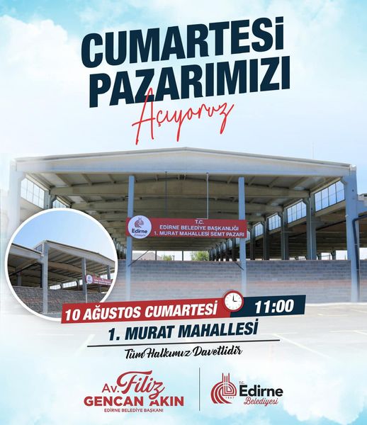 Edirne Belediye Başkanı Avukat Filiz Gencan Akın, Cumartesi pazarının 10 Ağustos Cumartesi günü halkın hizmetine açılacağını duyurdu. Pazaryerinin açılışı için saat 11.00 de tören düzenlenecek.