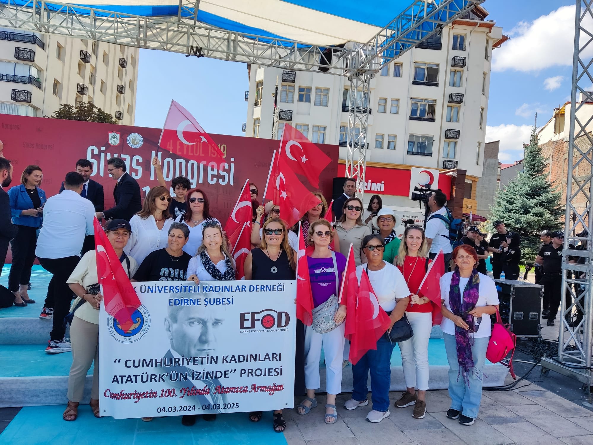 Türk Üniversiteli Kadınlar Derneği Edirne Şubesi (TÜKD), Edirne Fotoğraf Sanatı Derneği (EFOD) ve TÜKD Uzunköprü üyeleri, “Cumhuriyetin Kadınları Atatürk’ün İzinde” projesinin “Kongreler” bölümünü oluşturan üçüncü ayağı kapsamında Kurtuluş Savaşı’nın ve Cumhuriyet’in temellerinin atıldığı Erzurum ve Sivas’ta bir araya geldi.