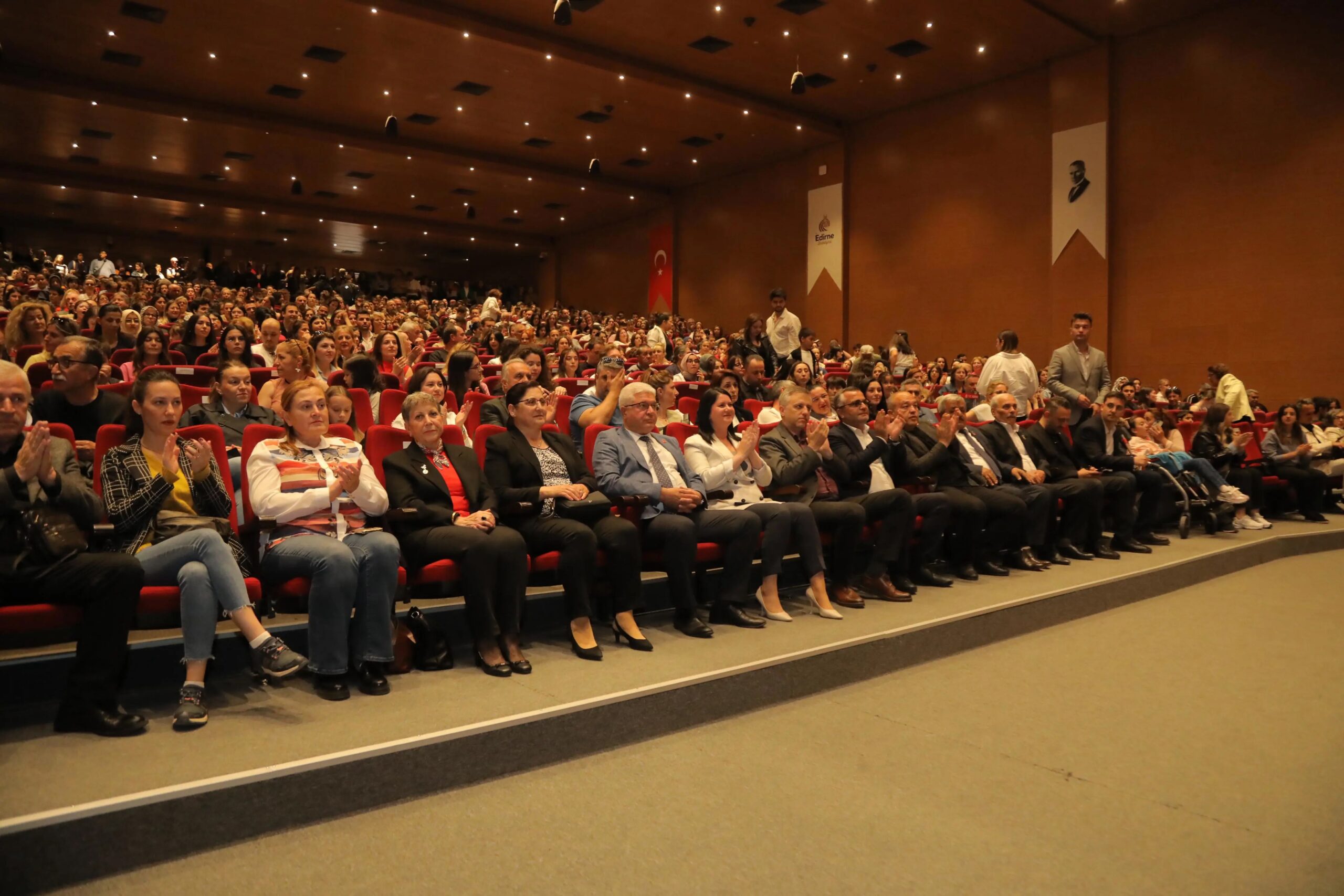 Edirne Belediye Başkanı Av. Filiz Gencan Akın’ın da izleyiciler arasında yer aldığı gecede salon tamamen doldu.