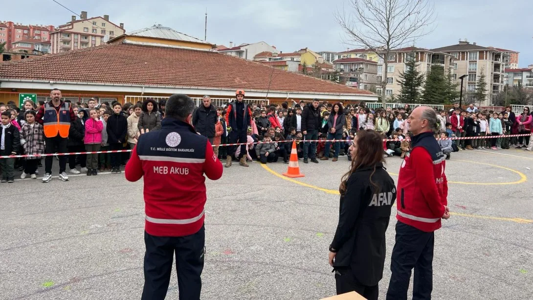 Bu amaçla; Vali Fahri Yücel İlkokulu’nda 1-7 Mart deprem haftası kapsamında öğrencilerimize ve perso-nelimize depremin oluşumu ile ilgili bilgiler verildi. Depremden önce, sırasında ve sonrasında yapılacaklar hususunda farkındalık oluşturuldu. Akabinde okulumuzda ‘Deprem Tahliye Tatbikatı’ icra edildi.”