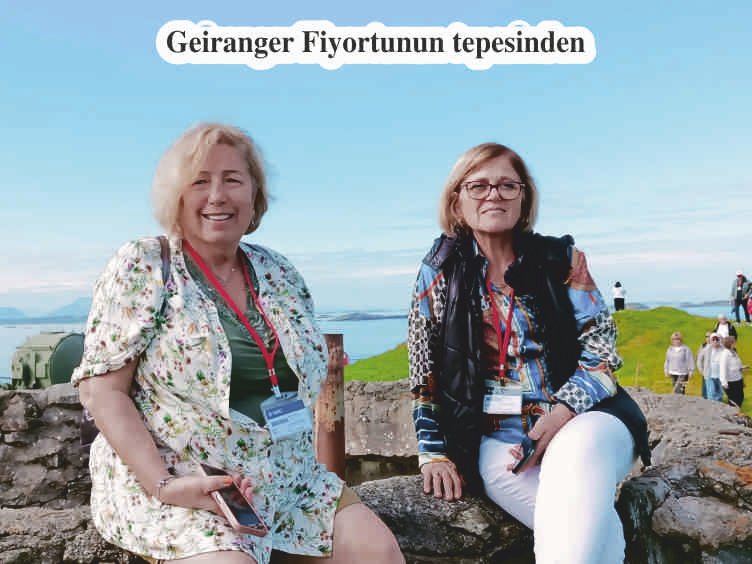 Avrupa’nın en yüksek haliç manzarasına sahip;1500 metre yükseklikteki “Geiranger gökdeleninde” bir mola veriyoruz. Geirenger Skywalk denilen bu yüksekliğe, biletimiz önceden alındığı için gişeye uğramadan geçiyoruz. Otobüsümüz 5 km’lik dik bir yolu çıkarak zirveye ulaşıyor. 25-30 adımla tepeye çıkıyoruz İlk gözüme çarpan birbirine yakın takımadalar oluyor. Buradan sakinliğin. hatta ıssızlığın ve yabancılığın nefesini alıyorum.