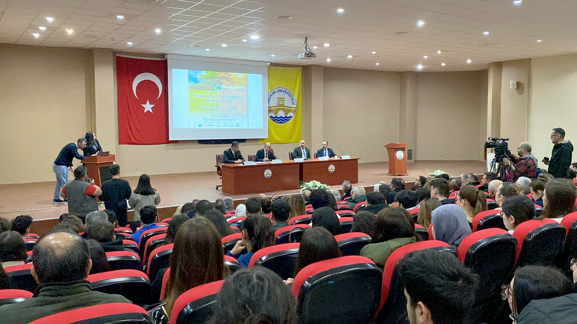 Edirne’de 22 Mart Dünya Su Günü dolayısıyla ‘İklim Krizi ve Edirne’ sempozyumu gerçekleştirildi. Edirne Çevre Gönüllüleri Derneği tarafından T.Ü. İktisadi ve İdari Bilimler Fakültesi’nde gerçekleştirilen sempozyumun açılışı programına Edirne Vali Yardımcısı Turgut Subaşı, Edirne Belediye Başkanvekili Cenk Ergüden, Belediye Başkan Yardımcısı Ertuğrul Tanrıkulu, T.Ü. Rektör Yardımcısı Prof. Dr. Mustafa Tan, kurum ve kuruluşların temsilcilerinin yanı sıra çok sayıda akademisyen ve öğrenciler katıldı.
